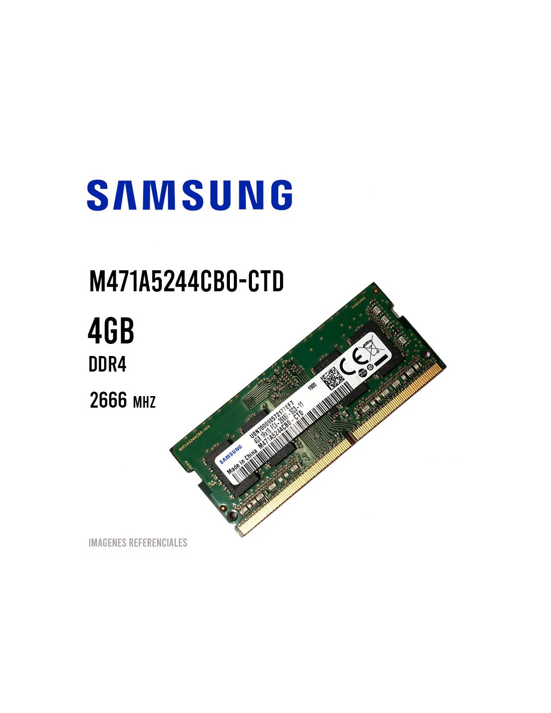 La Samsung M471A5244CB0-CTD es una memoria RAM DDR4 para portátiles con una capacidad de 4 GB en formato SO-DIMM. Está diseñada para ofrecer un rendimiento estable en tareas básicas como navegación, oficina y uso multimedia.
