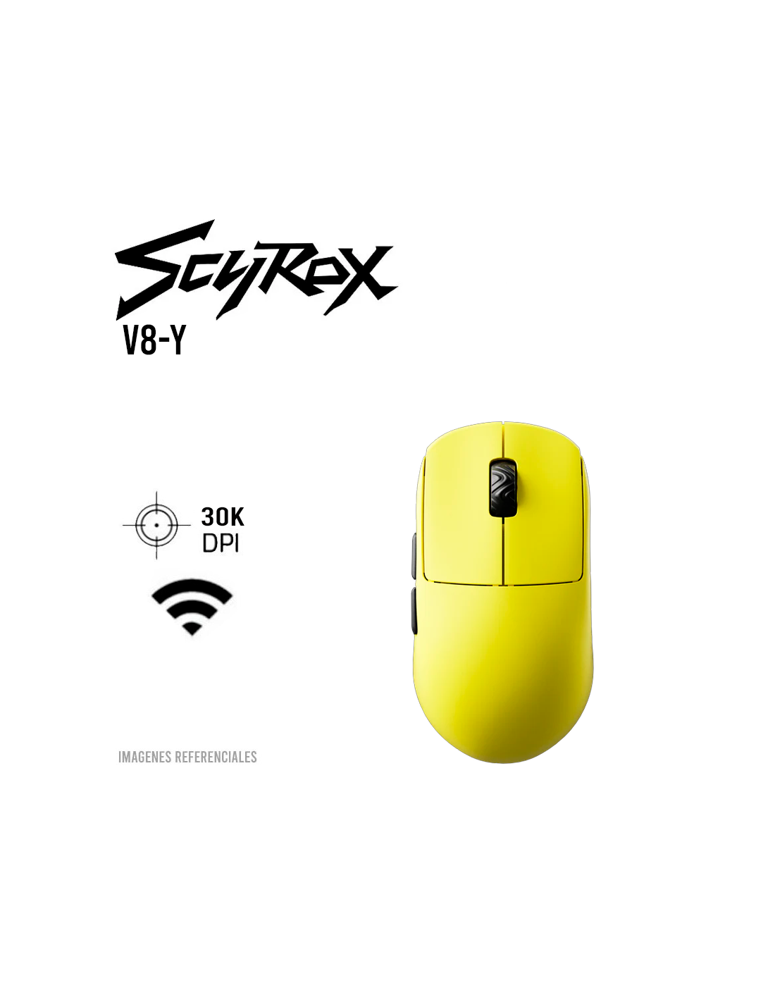 MOUSE GAMER SCYROX V8 ( V8-Y ) WIRELESS - USB-C | 30K DPI | SENSOR PAW3950 | AMARILLO