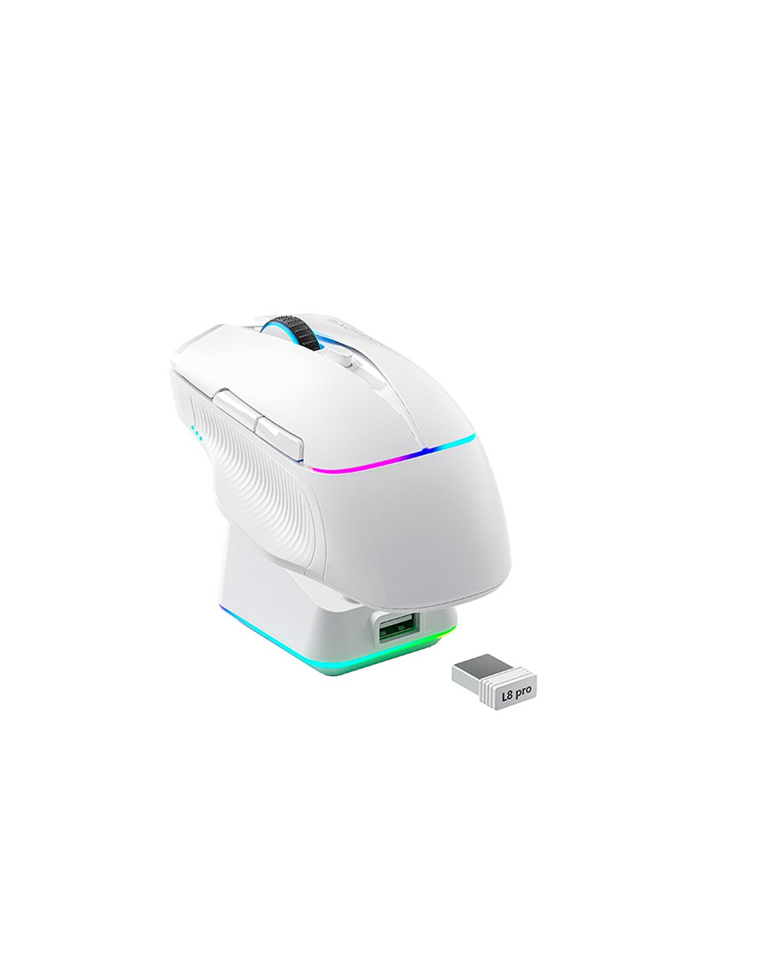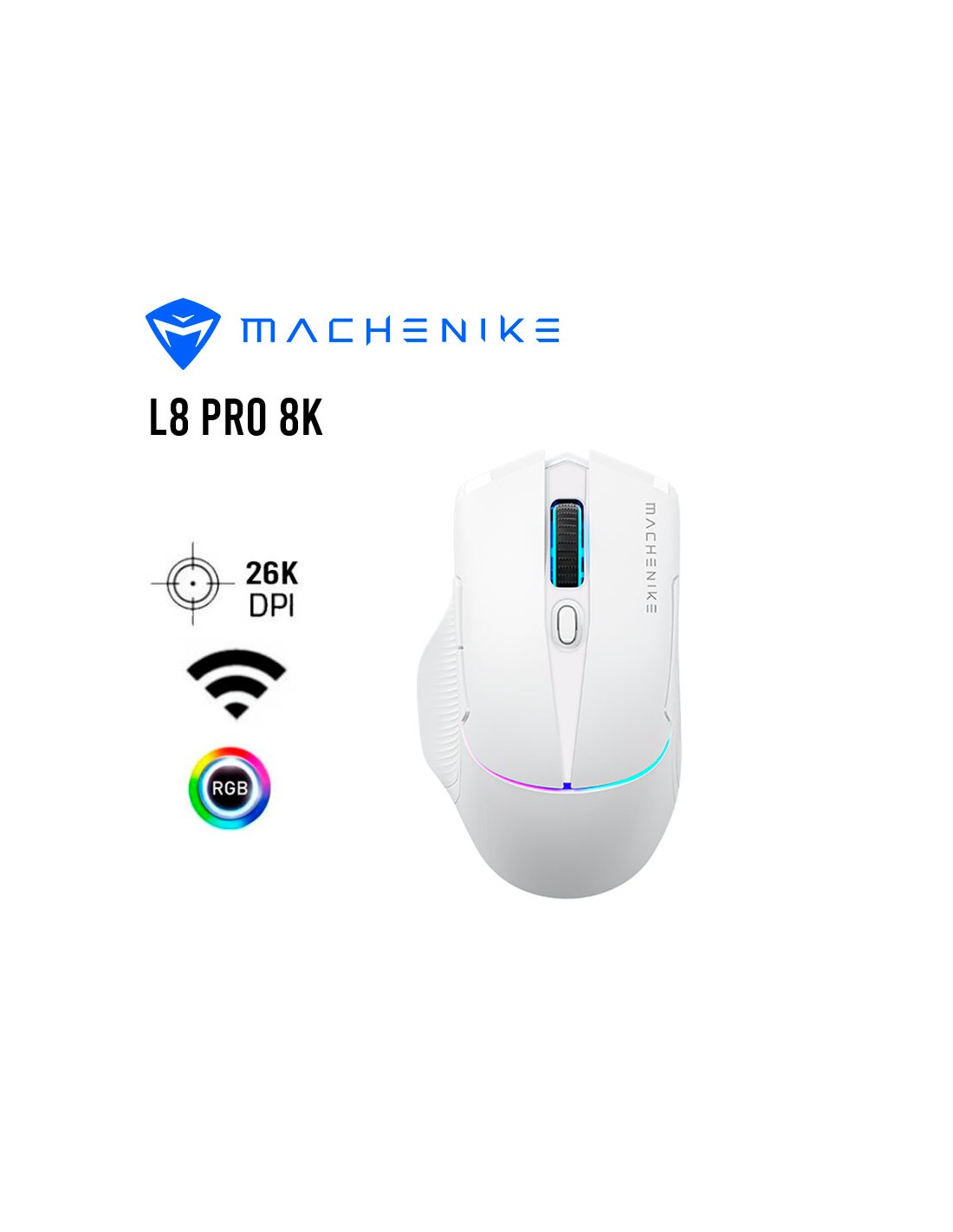 MOUSE GAMER MACHENIKE L8 PRO 8K WHITE ( L8 PRO 8K ) SENSOR PAW3395 | WIRED - WIRELESS 2.4GHZ + BASE DE CARGA | LED-RGB