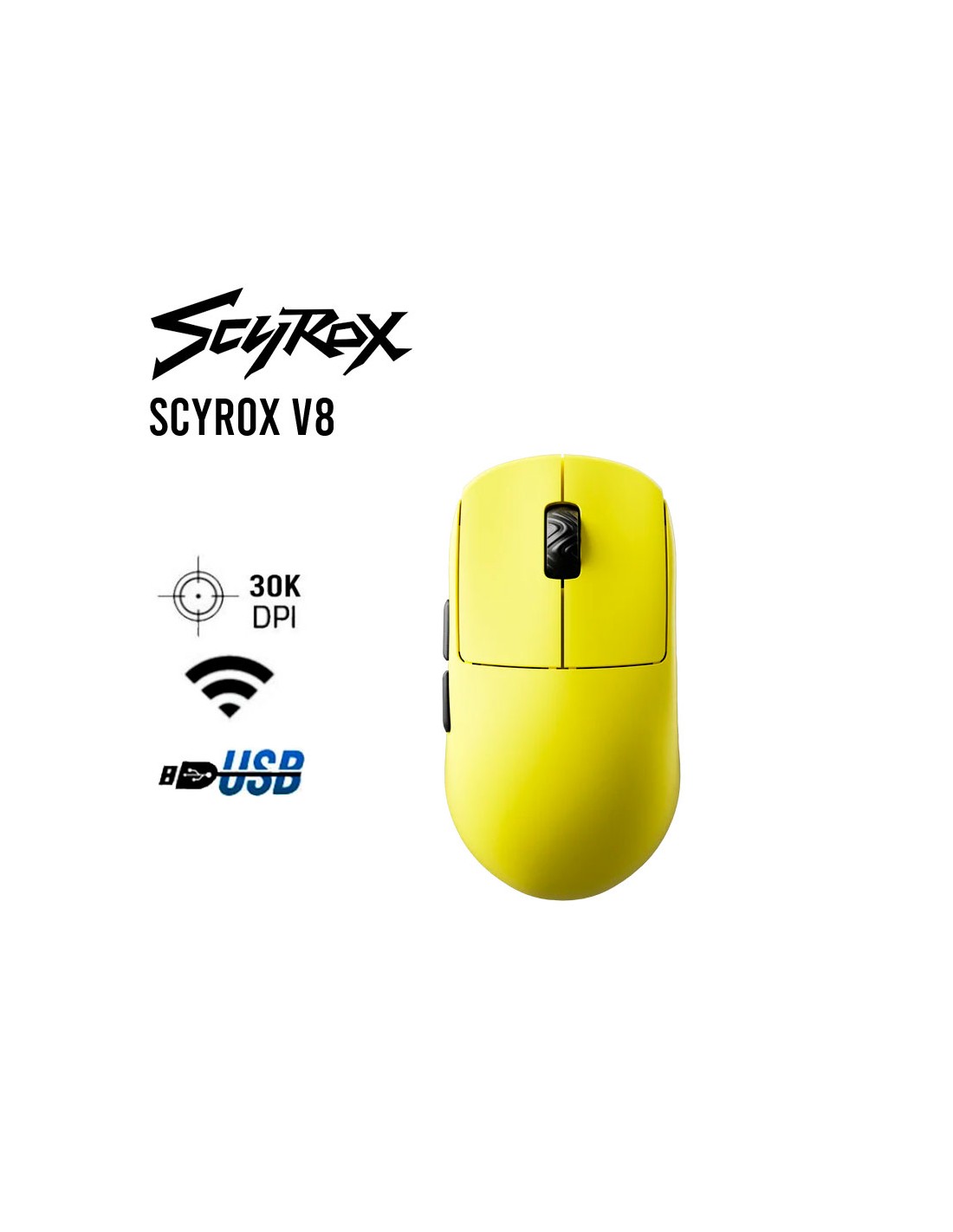 MOUSE GAMER SCYROX V8 ( V8-Y ) WIRELESS - USB-C | 30K DPI | SENSOR PAW3950 | SWITCH KAILH | AMARILLO