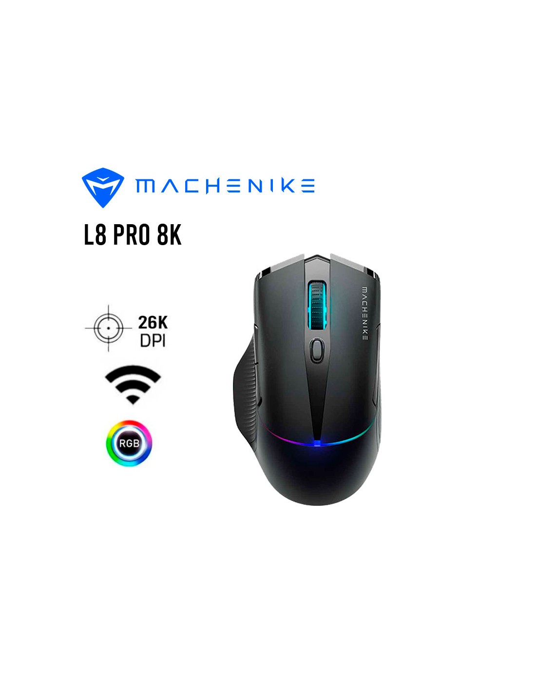 MOUSE GAMER MACHENIKE L8 PRO 8K BLACK ( L8 PRO 8K ) SENSOR PAW3395 | WIRED - WIRELESS 2.4GHZ + BASE DE CARGA | LED-RGB