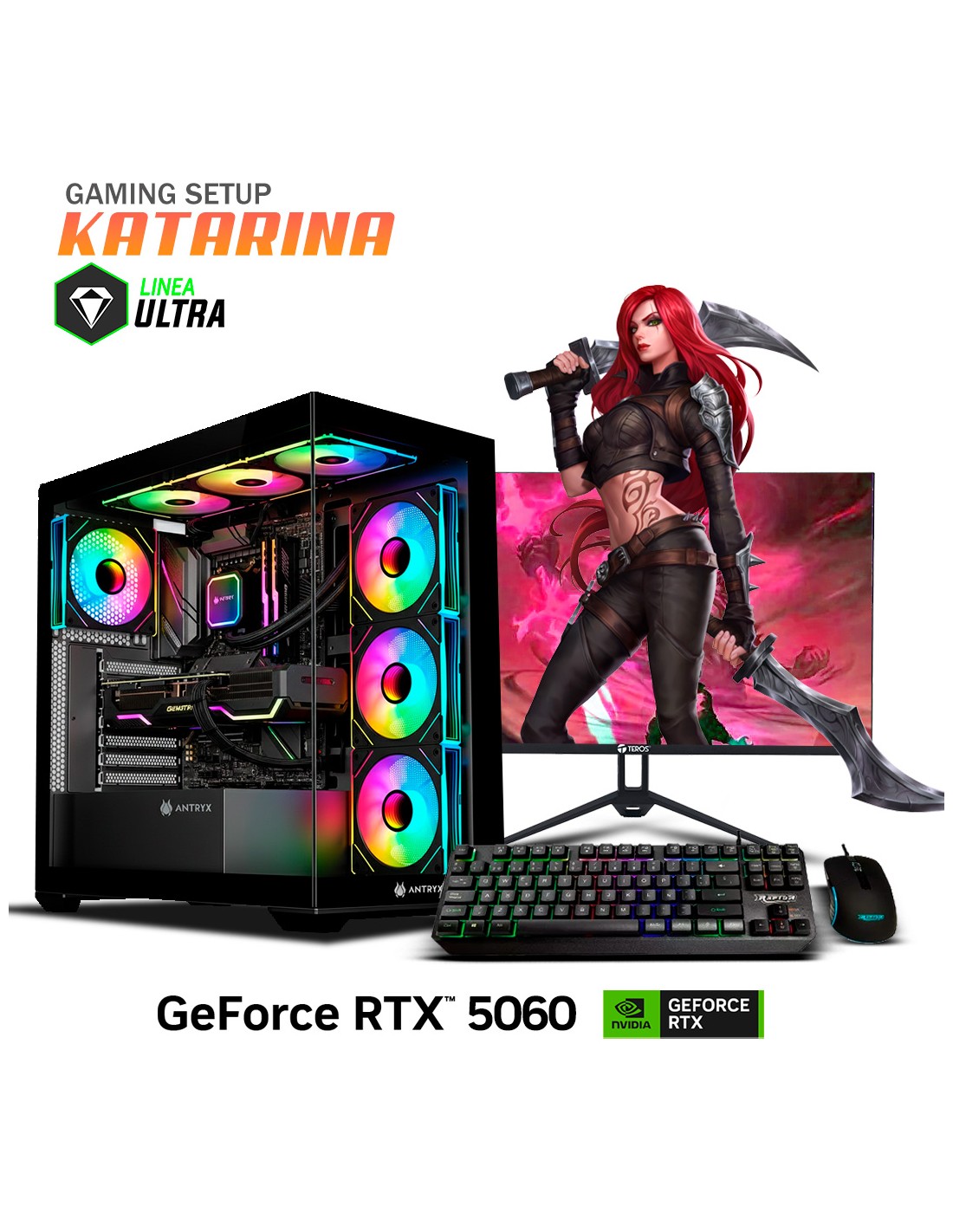 PC GAMER RYZEN KATARINA RYZEN 5 5500X3D 16GB 500GB SSD GEFORCE RTX 5060 8GB + 23.8 FHD + KIT RAPTOR