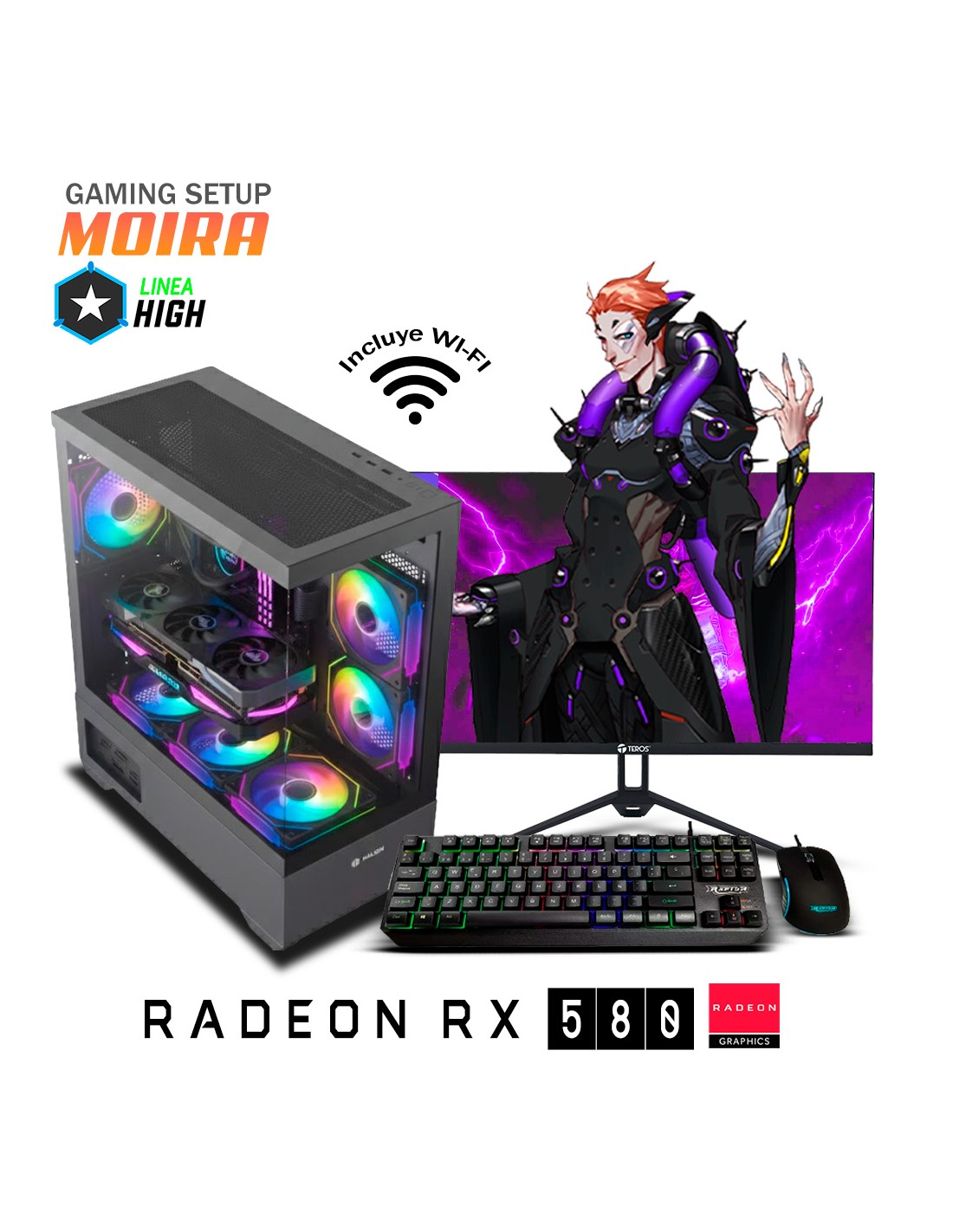 PC GAMER MOIRA INTEL I3 13100F 16GB 500GB SSD RX 580 8GB + 23.8 FHD 144HZ + KIT RAPTOR