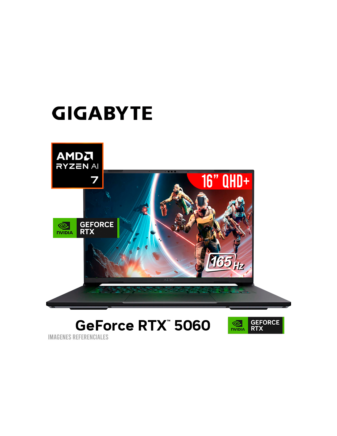 LAPTOP GAMER GIGABYTE AERO X16 RYZEN AI 7-350 16GB 1TB SSD GEFORCE RTX 5060 8GB 16 QHD+ 165HZ WINDOWS 11 (1VH93USC94AH)