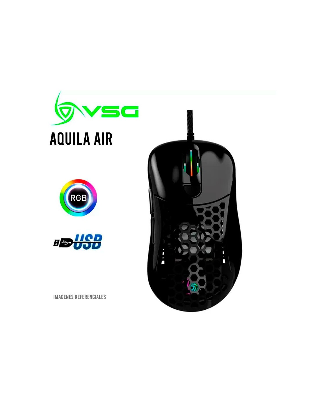 MOUSE VSG AQUILA AIR BLACK BRILLANTE ( VG-M550-BLK-GLO ) GAMING | 16K DPI | SENSOR PMW3389 | LED-RGB