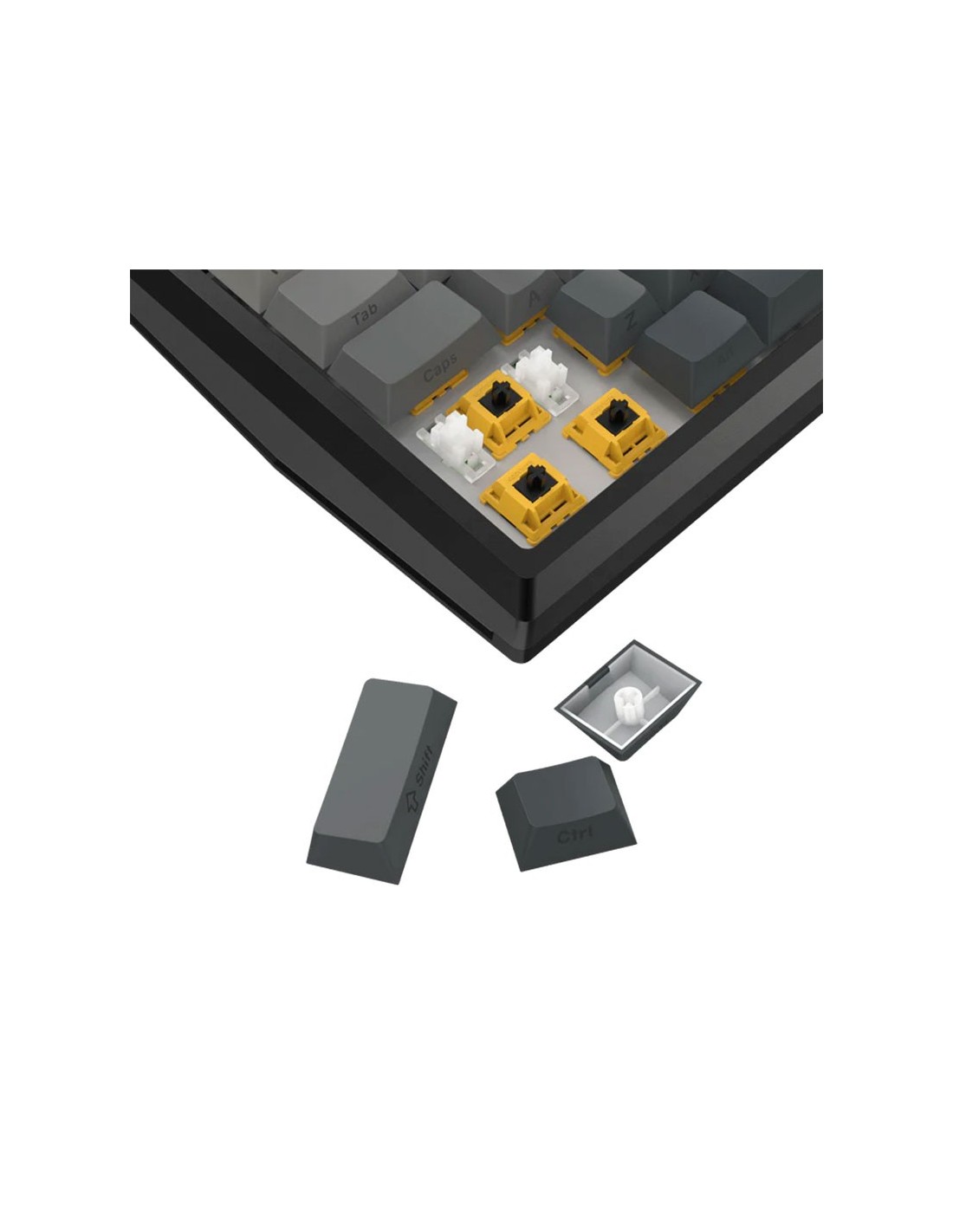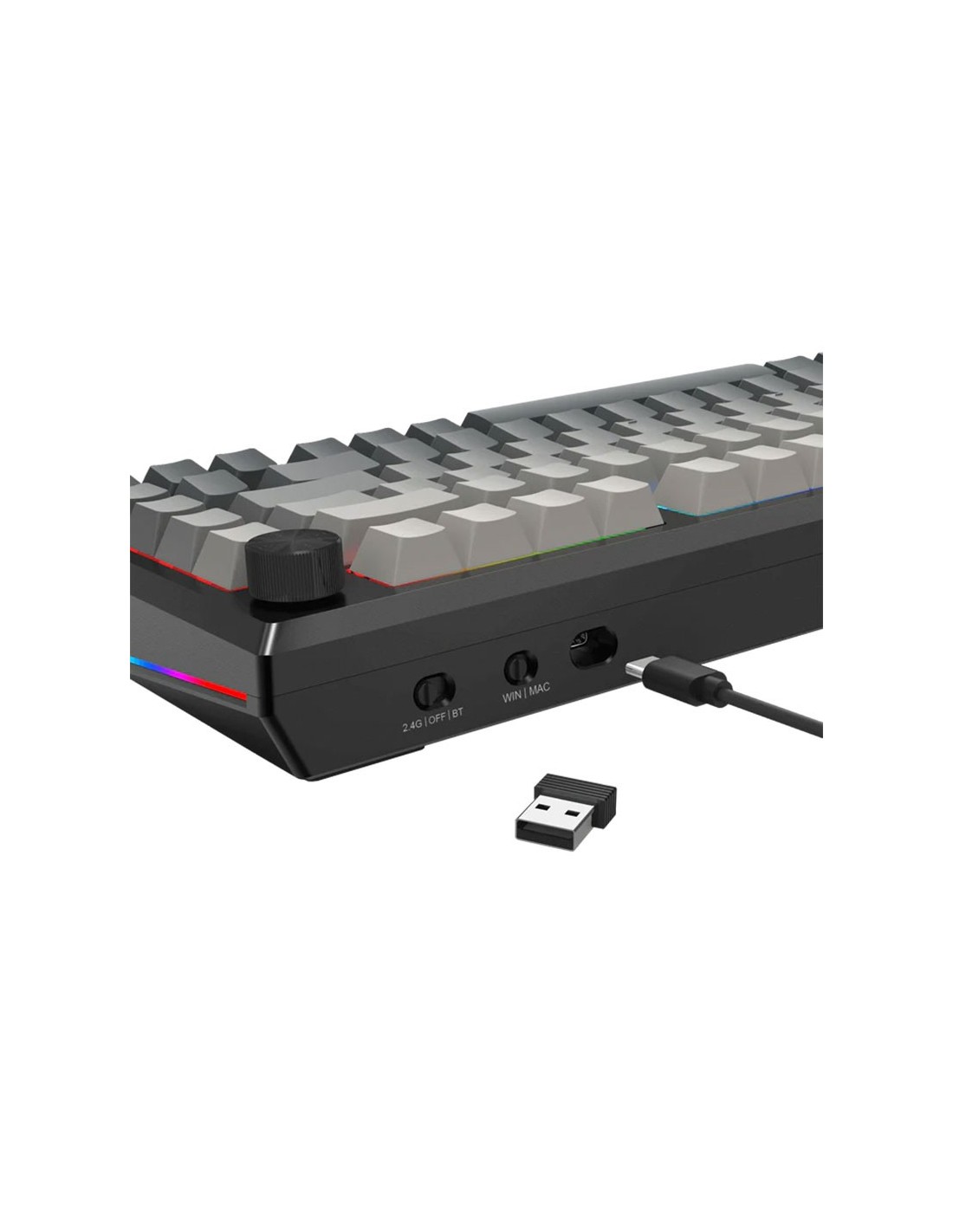 La estructura del cuerpo se diferencia de la fijación tradicional con tornillos al utilizar tapas con cierre de precisión y juntas que contribuyen a la reducción del ruido y a la flexibilidad. Proporciona una respuesta uniforme, mientras que la amortiguación vertical reduce el ruido rígido, ofreciendo una sensación de escritura nítida, limpia y suave. El chasis del K687 está fabricado con aluminio CNC de alta resistencia, recubierto con un avanzado proceso de esmerilado. Mantiene el teclado firme y elegante sobre el escritorio para una experiencia de escritura de primera calidad. El chasis del K687 está fabricado con aluminio CNC de alta resistencia, El diseño innovador conserva la longitud original del 65%, eliminando el teclado numérico para mayor espacio de movimiento del ratón. Además, incorpora la zona de teclas de función superior, esencial para muchos usuarios, eliminando las teclas de combinación FN, lo que lo hace compacto, más práctico y práctico. con un avanzado proceso de esmerilado. Mantiene el teclado firme y elegante sobre el escritorio para una experiencia de escritura de primera calidad.