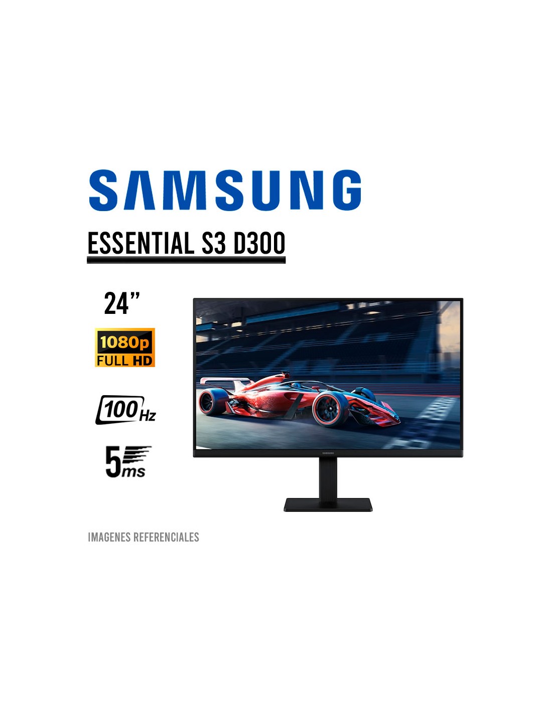 MONITOR SAMSUNG 24" ESSENTIAL S3 D300 (LS24D300GALXPE) PANEL IPS| 100HZ| 1X HDMI- 1X VGA
