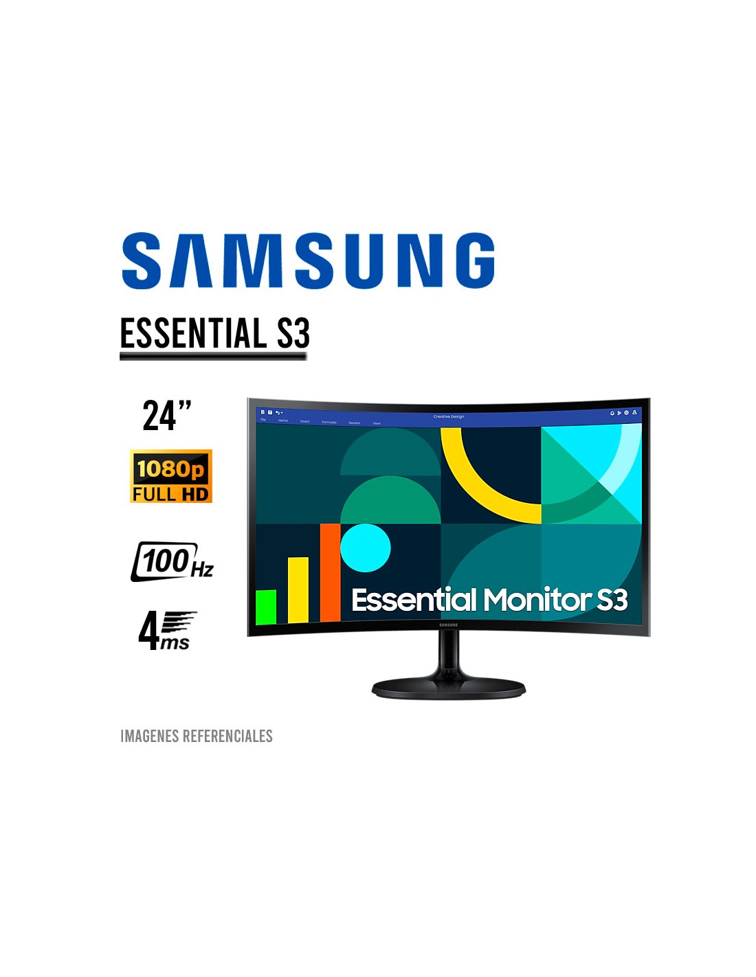 MONITOR SAMSUNG 24" ESSENTIAL S3 ( LS24D360GALXPE ) PANEL VA | 100HZ - 4MS | HDMI - VGA