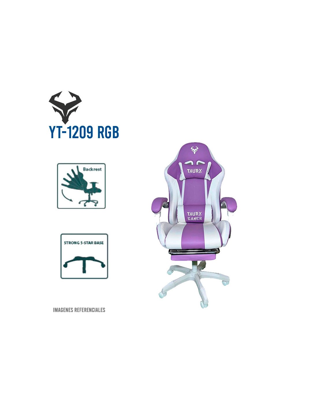 La Silla Gamer TaurX RGB eleva tu experiencia de juego con un diseño ergonómico premium en cuero PU y un sistema de luces RGB con control remoto que transforma tu setup. Su respaldo reclinable 135°, altura regulable y cojines acolchados para cabeza y lumbar —este último con masajeador integrado— garantizan comodidad total en sesiones largas. Equipada con ruedas 360°, brazos y posa pies acolchados, ofrece movilidad y soporte superior. Capaz de resistir hasta 120 kg, combina durabilidad, estilo y confort. TaurX: calidad, garantía y la estética gamer que buscabas.