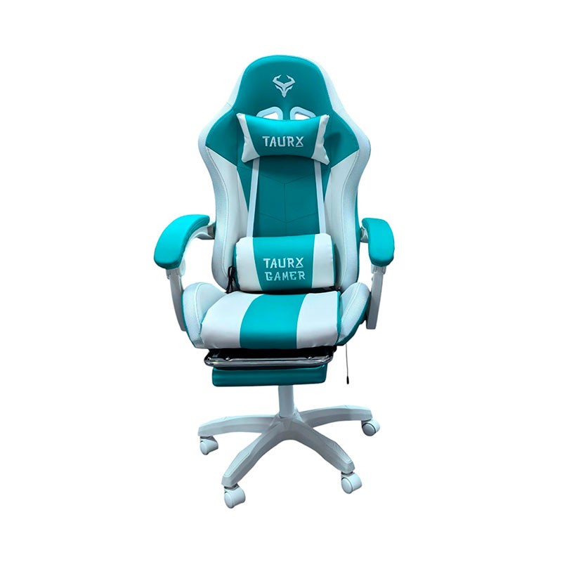 La Silla Gamer TaurX RGB eleva tu experiencia de juego con un diseño ergonómico premium en cuero PU y un sistema de luces RGB con control remoto que transforma tu setup. Su respaldo reclinable 135°, altura regulable y cojines acolchados para cabeza y lumbar —este último con masajeador integrado— garantizan comodidad total en sesiones largas. Equipada con ruedas 360°, brazos y posa pies acolchados, ofrece movilidad y soporte superior. Capaz de resistir hasta 120 kg, combina durabilidad, estilo y confort. TaurX: calidad, garantía y la estética gamer que buscabas.