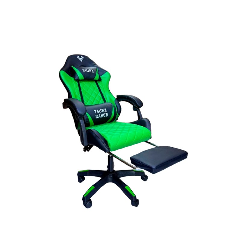 La Silla Gamer TaurX eleva tu experiencia de juego con un diseño ergonómico premium en cuero PU. Siente la comodidad total en sesiones largas gracias a su respaldo reclinable 135°, altura regulable y cojines acolchados para cabeza y lumbar, este último con masajeador integrado. Movilidad y soporte superior están garantizados con sus ruedas 360°, brazos y posa pies acolchados. Combina durabilidad, estilo y confort; es capaz de resistir hasta 120 kg.