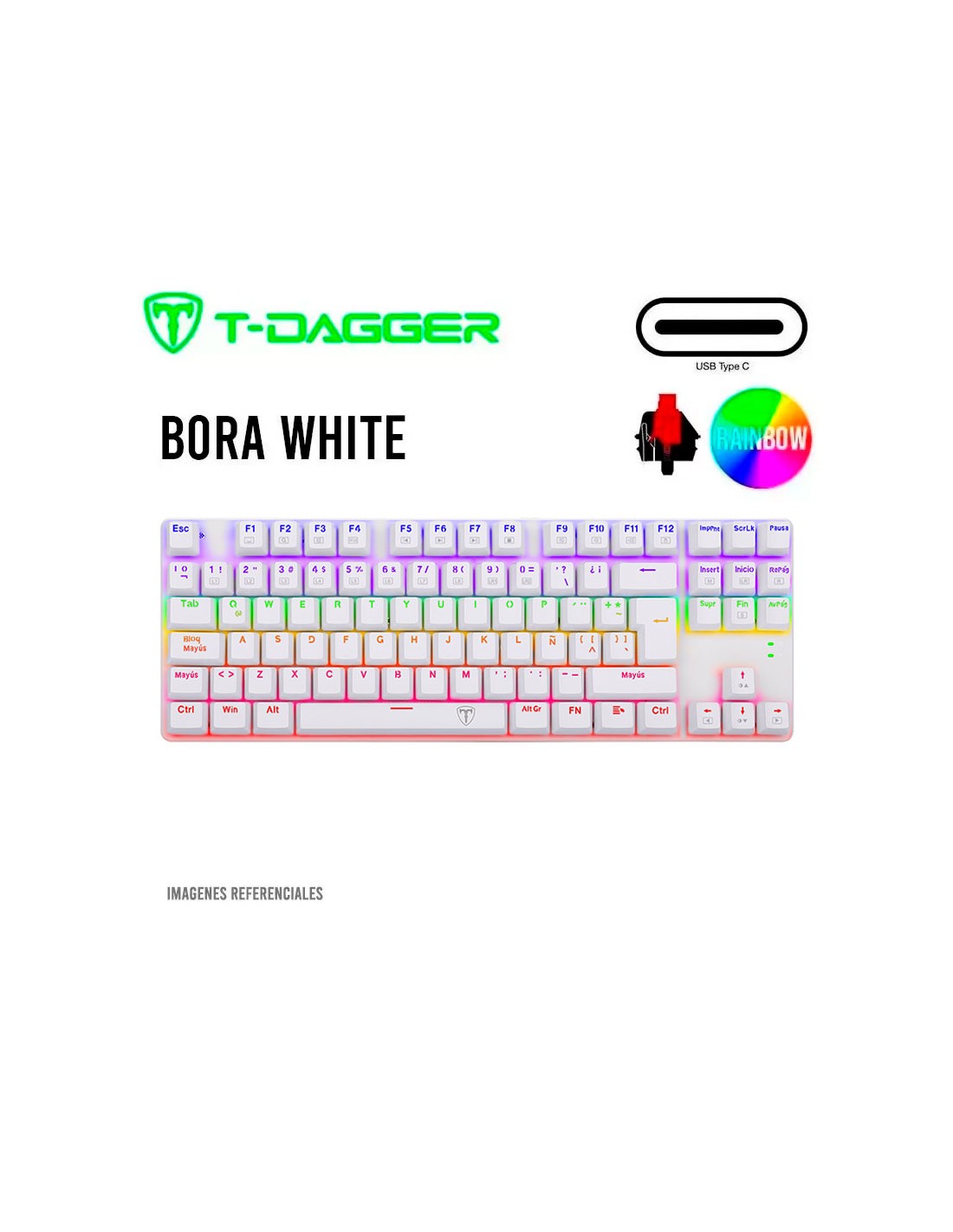 TECLADO T-DAGGER BORA WHITE ( T-TGK313W-RD ) GAMING | SWITCH RED | RETROILUMINACION RAINBOW