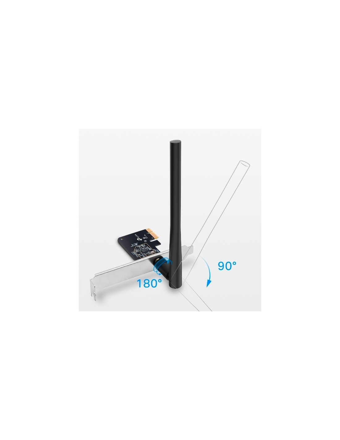 La tarjeta de red inalámbrica cuenta con una interfaz PCI Express y dimensiones compactas de 120.8 × 78.5 × 21.5 mm (4.76 × 3.09 × 0.85 in). Viene equipada con una antena externa desmontable para una mejor recepción de la señal. Compatible con estándares inalámbricos IEEE 802.11b/g/n a 2.4 GHz y IEEE 802.11a/n/ac a 5 GHz, esta tarjeta soporta diversas tasas de señal: hasta 433 Mbps en 11ac, hasta 200 Mbps en 11n, y hasta 54 Mbps en 11a/g y 11 Mbps en 11b. La sensibilidad de recepción varía según la frecuencia y el estándar, alcanzando hasta -59.0dBm en 11ac HT80 a 5 GHz y -70dBm en 11n HT40 a 2.4 GHz. La potencia de transmisión es de 18 dBm (FCC) / 23 dBm (CE) (EIRP) para 5 GHz y 18 dBm (FCC) / 20 dBm (CE) (EIRP) para 2.4 GHz, lo que asegura una transmisión potente y fiable para conexiones inalámbricas rápidas y estables.