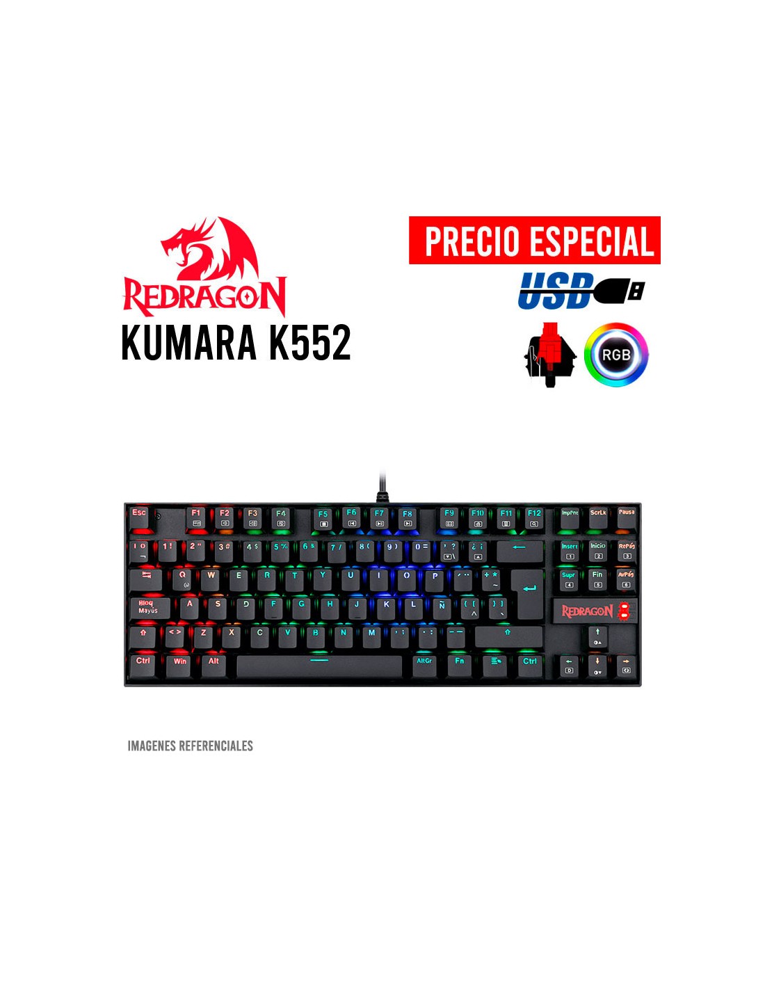TECLADO GAMER REDRAGON KUMARA ( K552RGB-1 SP ) LED-RGB | USB | SWITCH RED | BLACK