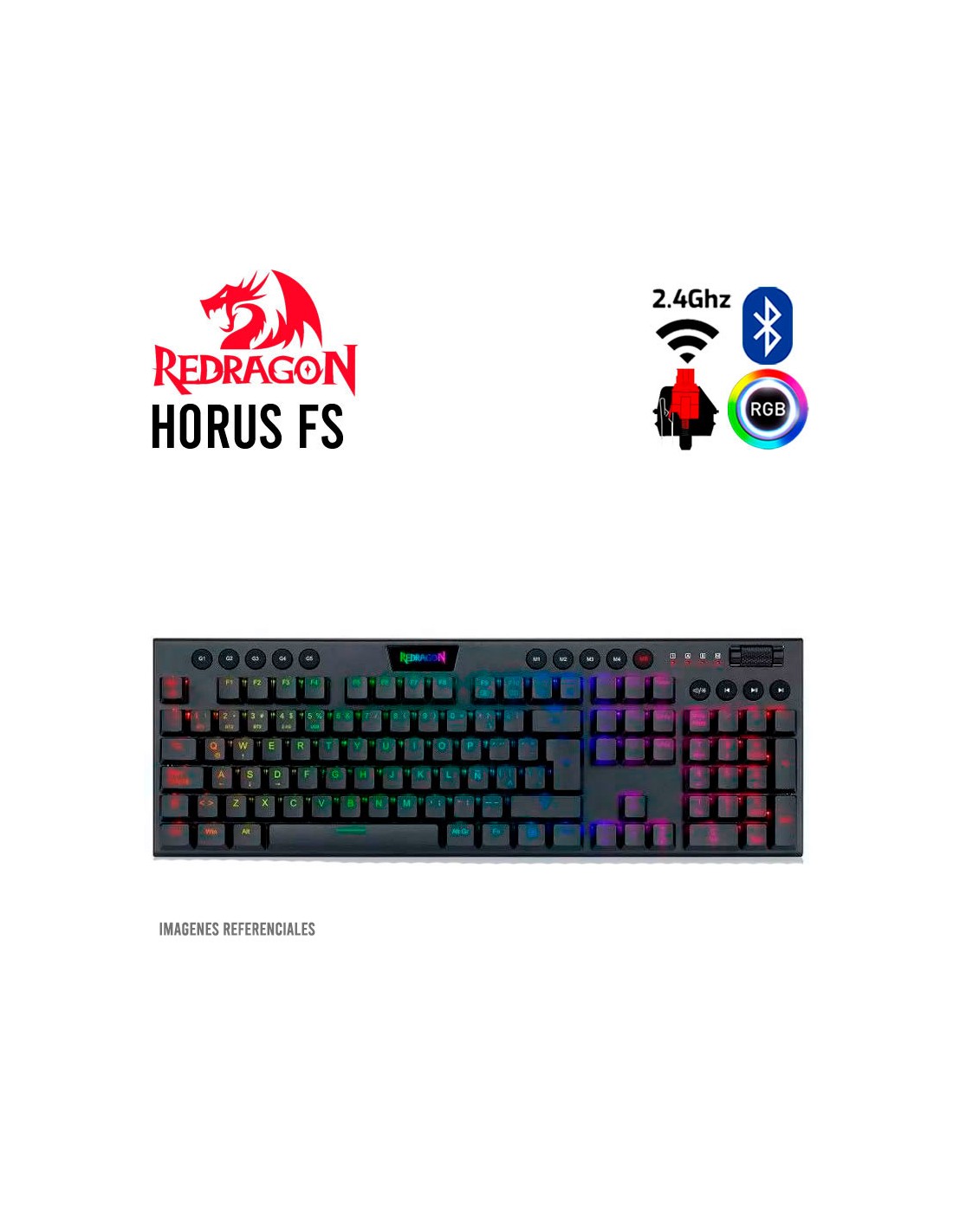 TECLADO GAMER REDRAGON HORUS FS ( K618-RGB SP-RED ) LED RGB | USB TYPE-C | WIRELESS | SWITCH RED | BLACK