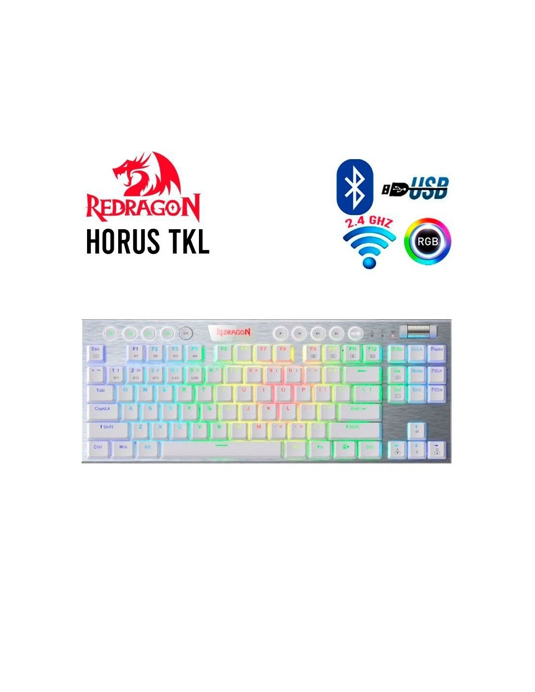 TECLADO GAMER REDRAGON HORUS FS ( K618-RGB SP-RED ) LED RGB | USB TYPE-C | WIRELESS |...