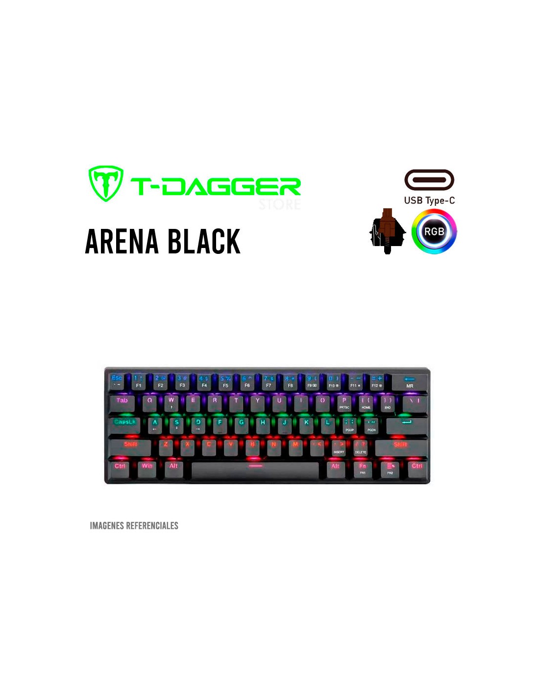 TECLADO T-DAGGER ARENA BLACK (T-TGK321-BR SP) GAMING| SWITCH BROWN | RETROILUMINACION RAINBOW