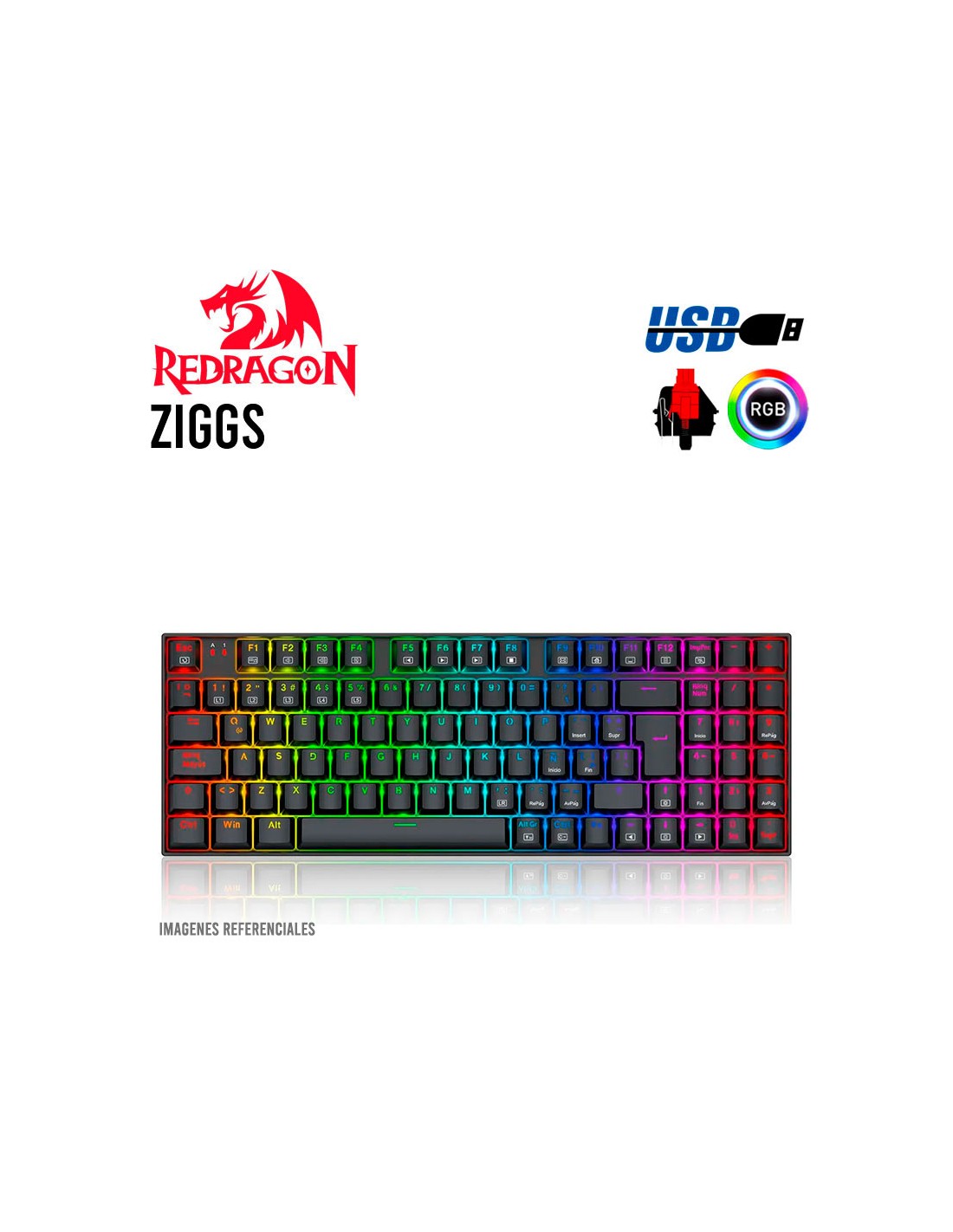 TECLADO GAMER REDRAGON FIZZ PRO BLACK ( K616-RGB BK-SP ) CABLE - USB 2.4G - BT |...