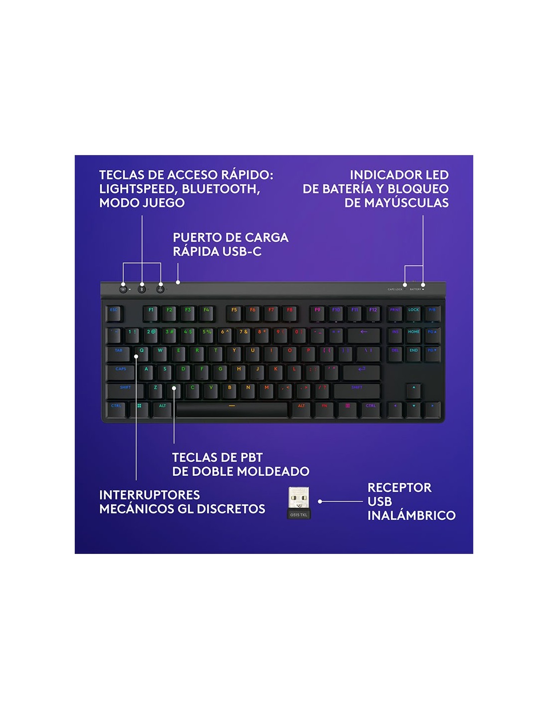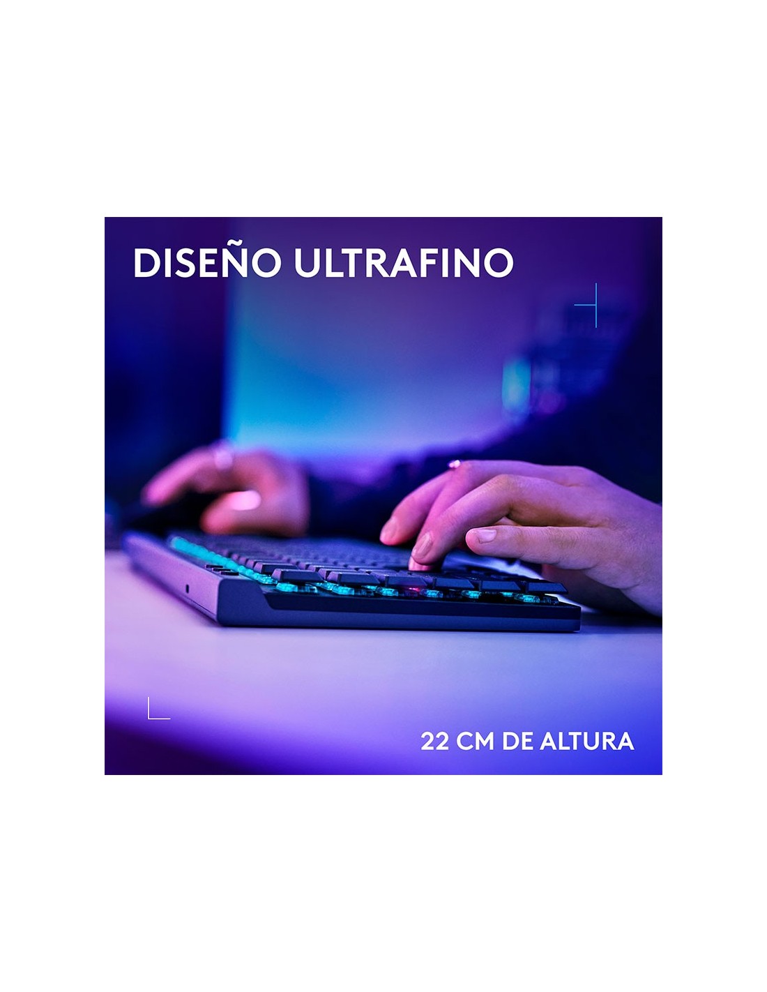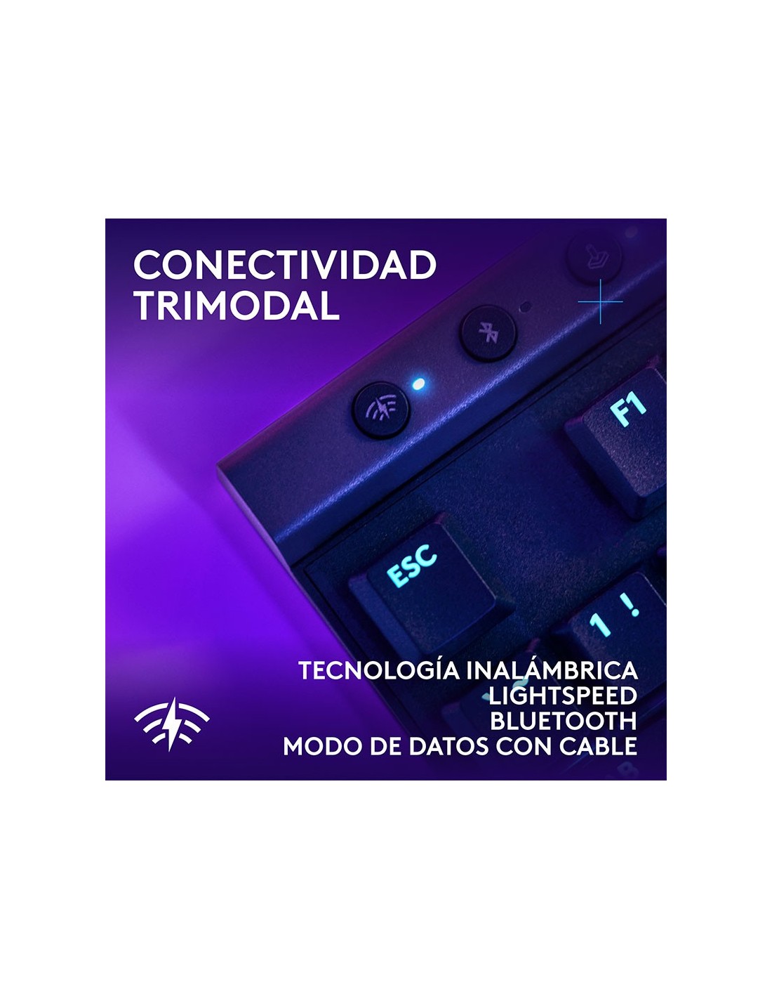 Logitech G515 LIGHTSPEED TKL ofrece velocidad, precisión y personalización con un diseño elegante, discreto y sin sección numérica. Este teclado inalámbrico para juegos incluye conectividad trimodal, interruptores mecánicos GL, tapas para teclas PBT de doble disparo, estructura con amortiguación del sonido y LIGHTSYNC RGB. Obtén la mejor conexión inalámbrica LIGHTSPEED de su clase con la conectividad trimodal. Con solo pulsar un botón, elige entre datos inalámbricos LIGHTSPEED, Bluetooth o con cable. Empareja mouses compatibles en un solo USB con el emparejamiento 2:1.