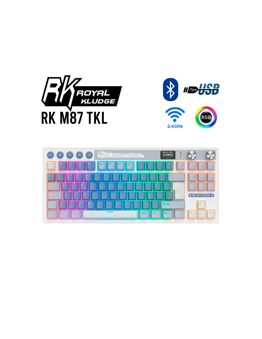 TECLADO GAMER ROYAL KLUDGE ( RK M87 TKL ) OCEAN BLUE | TRI-MODES WIRELESS-BT-USB | CREAM SWITCH | LED-RGB
