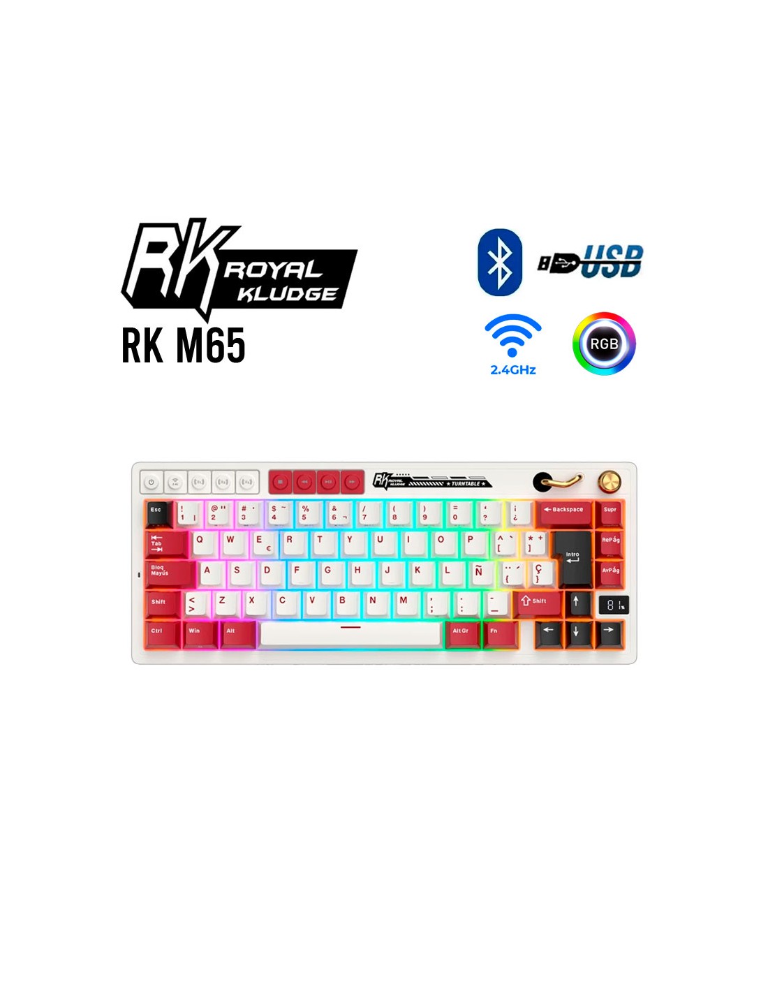 TECLADO GAMER ROYAL KLUDGE ( RK M65 ) FAMICOM | TRI-MODES WIRELESS - BT - USB | CREAM SWITCH | LED-RGB