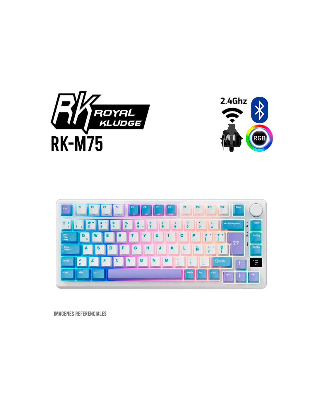 TECLADO GAMER ROYAL KLUDGE ( RK-M75 ) TARO MILK | TRI-MODES WIRELESS - BT - USB | K SILVER SWITCH | LED-RGB