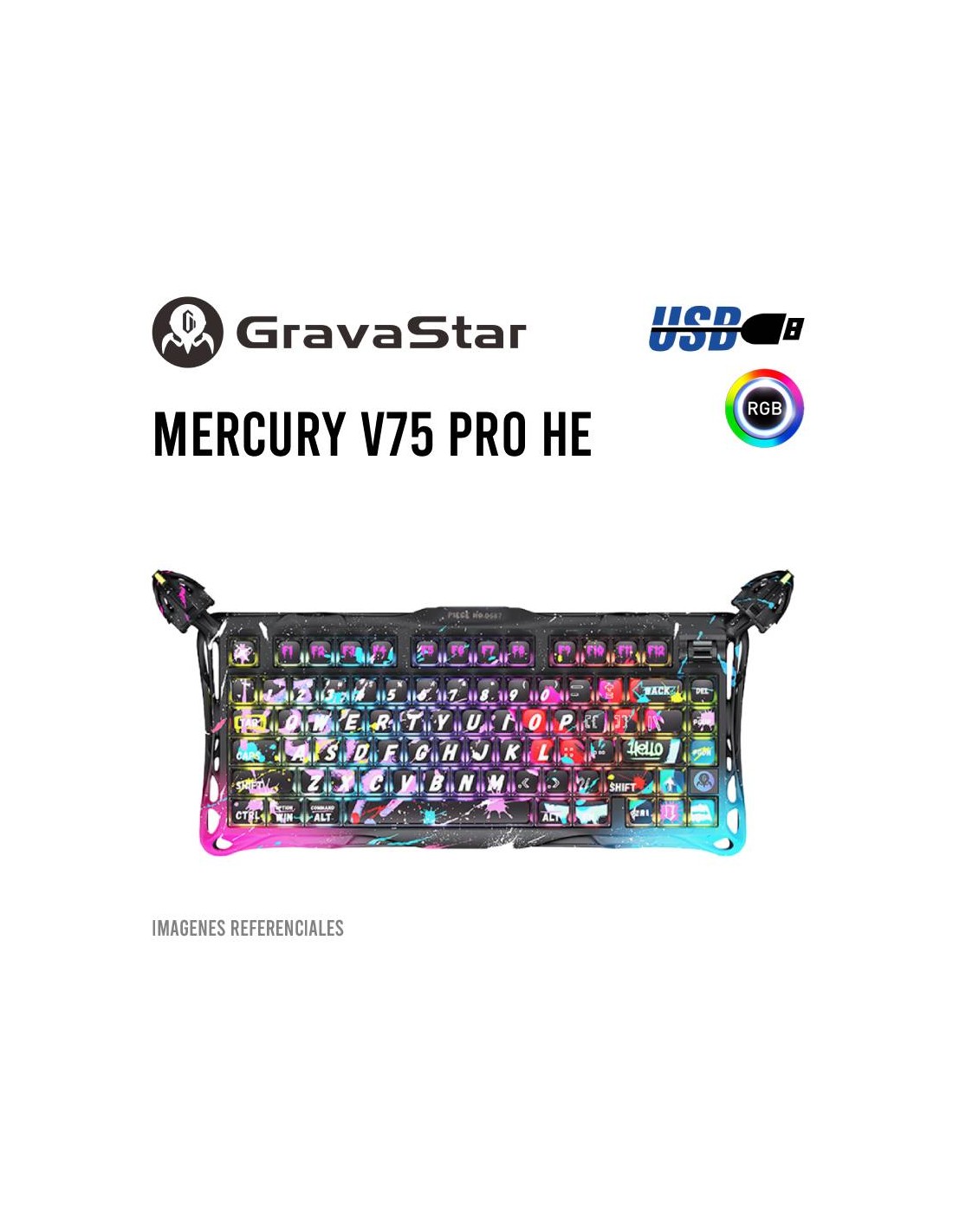 TECLADO GAMER GRAVASTAR MERCURY V75 PRO HE NEON GRAFFITI (GSV75PRO-CG-BLK) MECANICO| SWITCH HALL EFFECT| LED-RGB