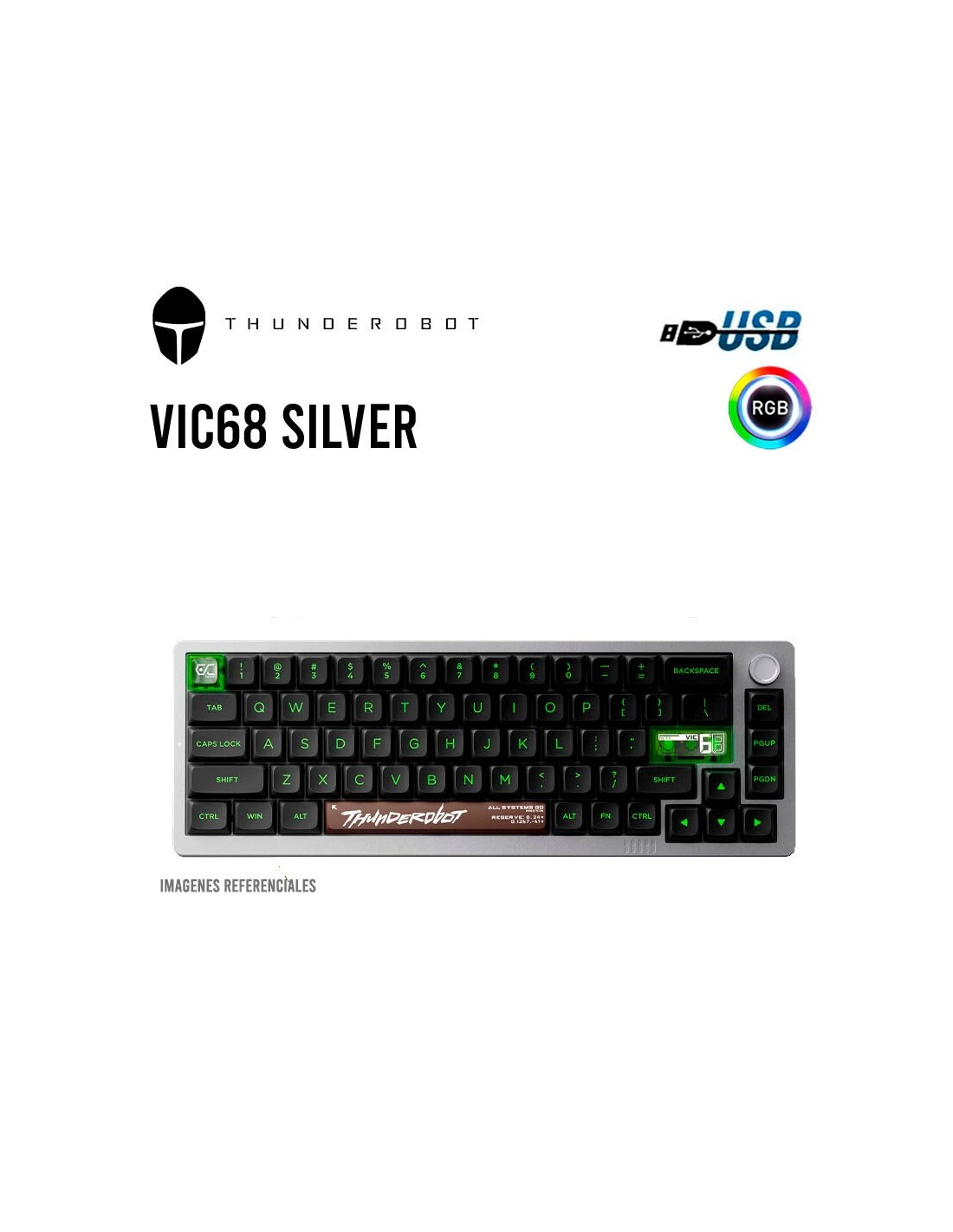 TECLADO GAMER THUNDEROBOT VIC68 SILVER | SWITCH GATERON PRO SILVER | LED-RGB