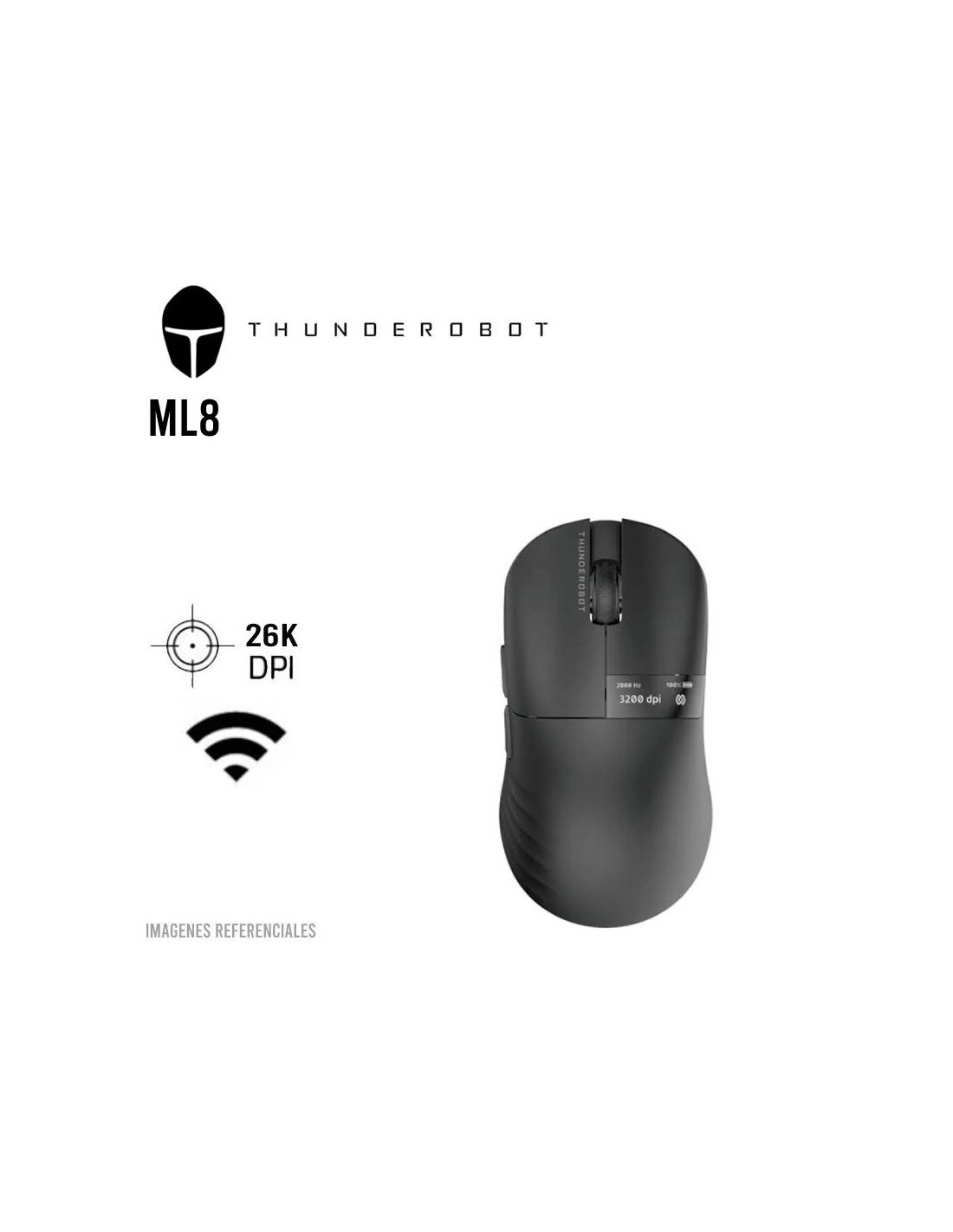 El Thunderobot ML8 es la elección perfecta para gamers que buscan un mouse confiable, preciso y con características innovadoras que mejoren su experiencia de juego. El Thunderobot ML8 es un mouse gamer de alto rendimiento que combina tecnología avanzada con un diseño ergonómico y ligero, ideal para jugadores que buscan precisión y comodidad en sesiones prolongadas. Equipado con el sensor PixArt PAW3395, ofrece una resolución de hasta 26,000 DPI, velocidad máxima de 650 IPS y aceleración de 50G, garantizando movimientos rápidos y precisos. Incluye una pequeña pantalla en la parte superior derecha que muestra en tiempo real información clave como el nivel de batería, la configuración de DPI y el modo de conexión, permitiendo ajustes rápidos sin necesidad de software adicional.