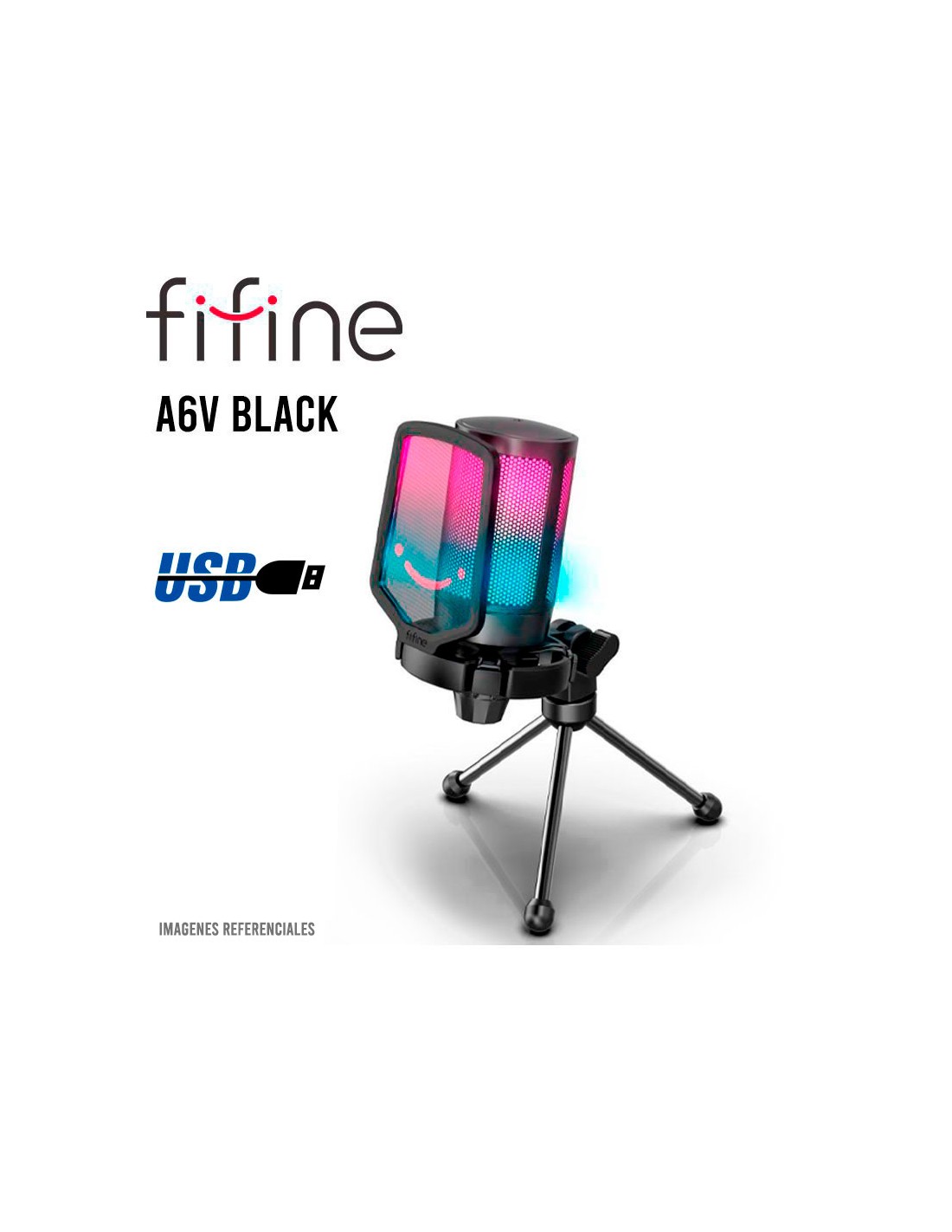MICROFONO FIFINE A6V ( A6V-B ) BLACK | CONDENSADOR | SOPORTE | LED-RGB