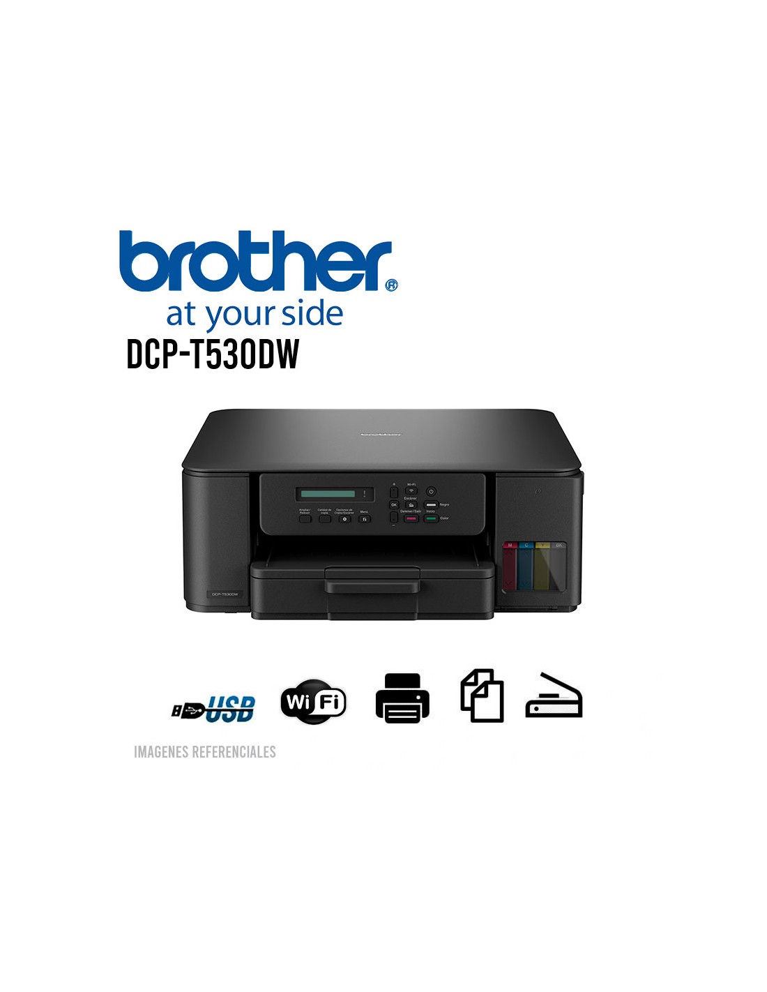 La impresora 3 en 1 de inyección de tinta a color DCP-T530DW de la serie InkBenefit Tank de Brother con conectividad inalámbrica e impresión dúplex hace que trabajar desde el hogar sea más eficiente. Realiza las tareas rápidamente con velocidades de impresión de hasta 27 páginas por minuto en negro y 11 páginas por minuto en color cuando imprimes en modo Eco, y velocidades de 16 ipm en negro y 9 ipm en color (ISO/IEC 24734).‡ La pantalla LCD te permite usar las funciones de la impresora fácilmente.