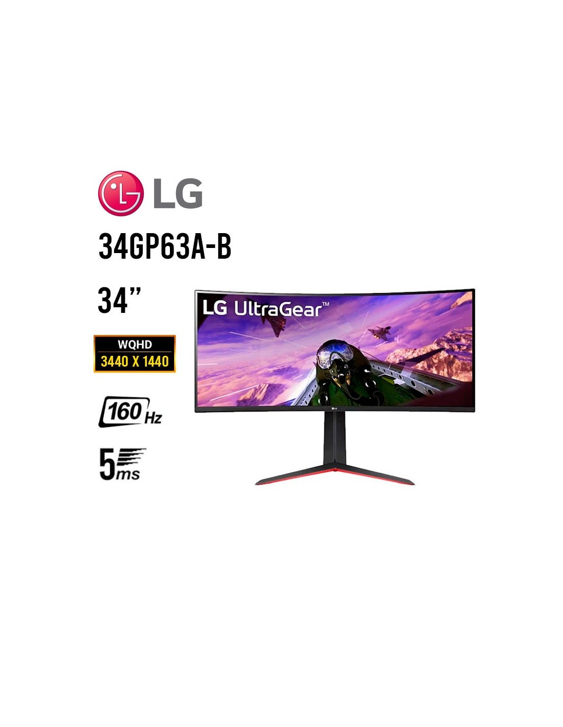 MONITOR LG 34" ULTRAGEAR ( 34GP63A-B ) CURVO GAMING | WQHD 3440X1440 | 2 HDMI - DP | 160HZ - 5MS