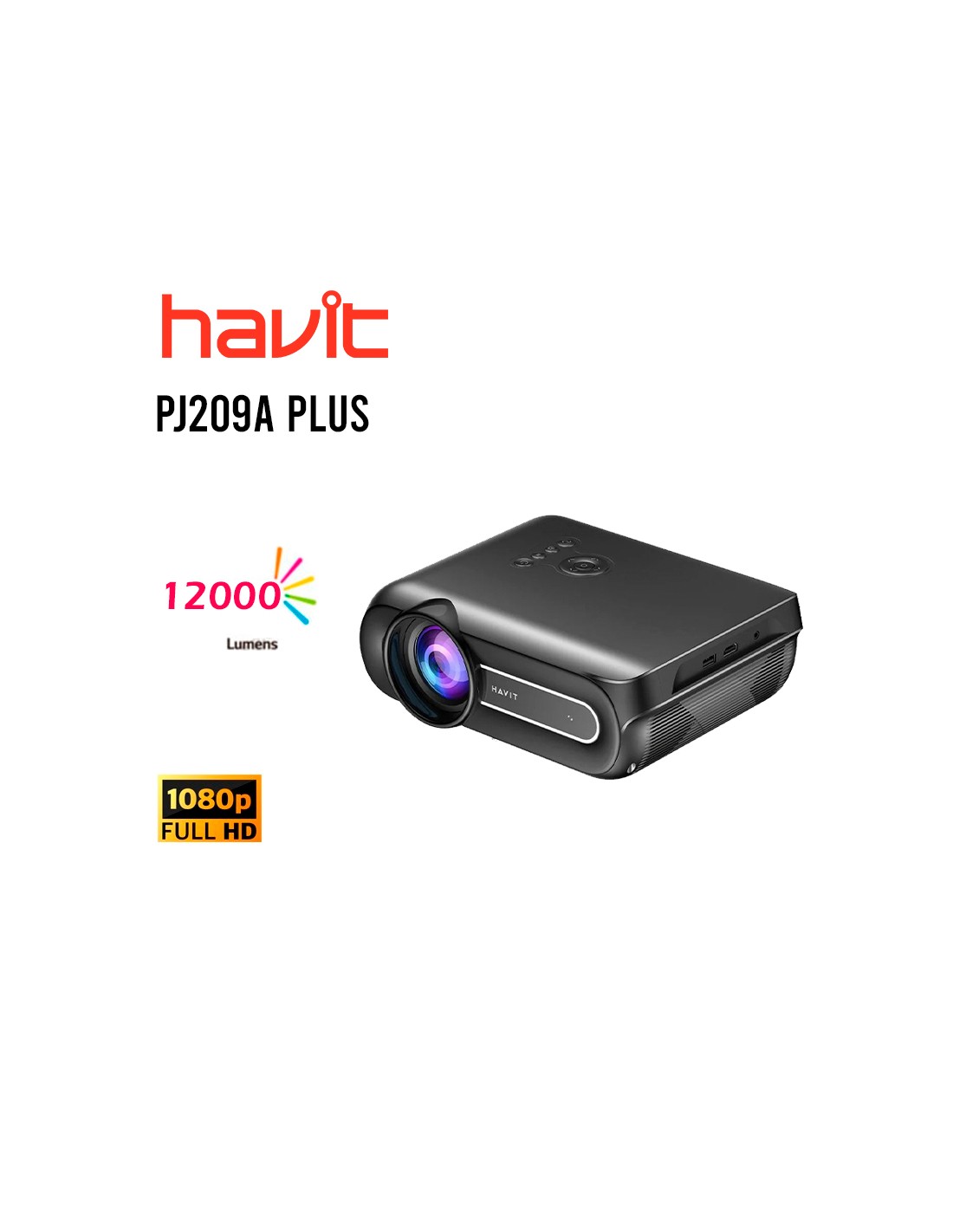 PROYECTOR HAVIT (PJ209A PLUS) NEGRO 1920X1080 12000 LUMENES| 4K |WIFI-BT