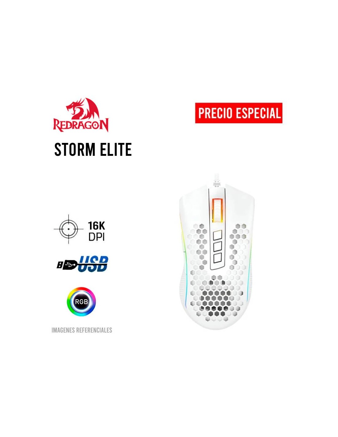 MOUSE GAMER REDRAGON STORM ELITE ( M988W-RGB ) LED RGB | USB | 16000 DPI | WHITE