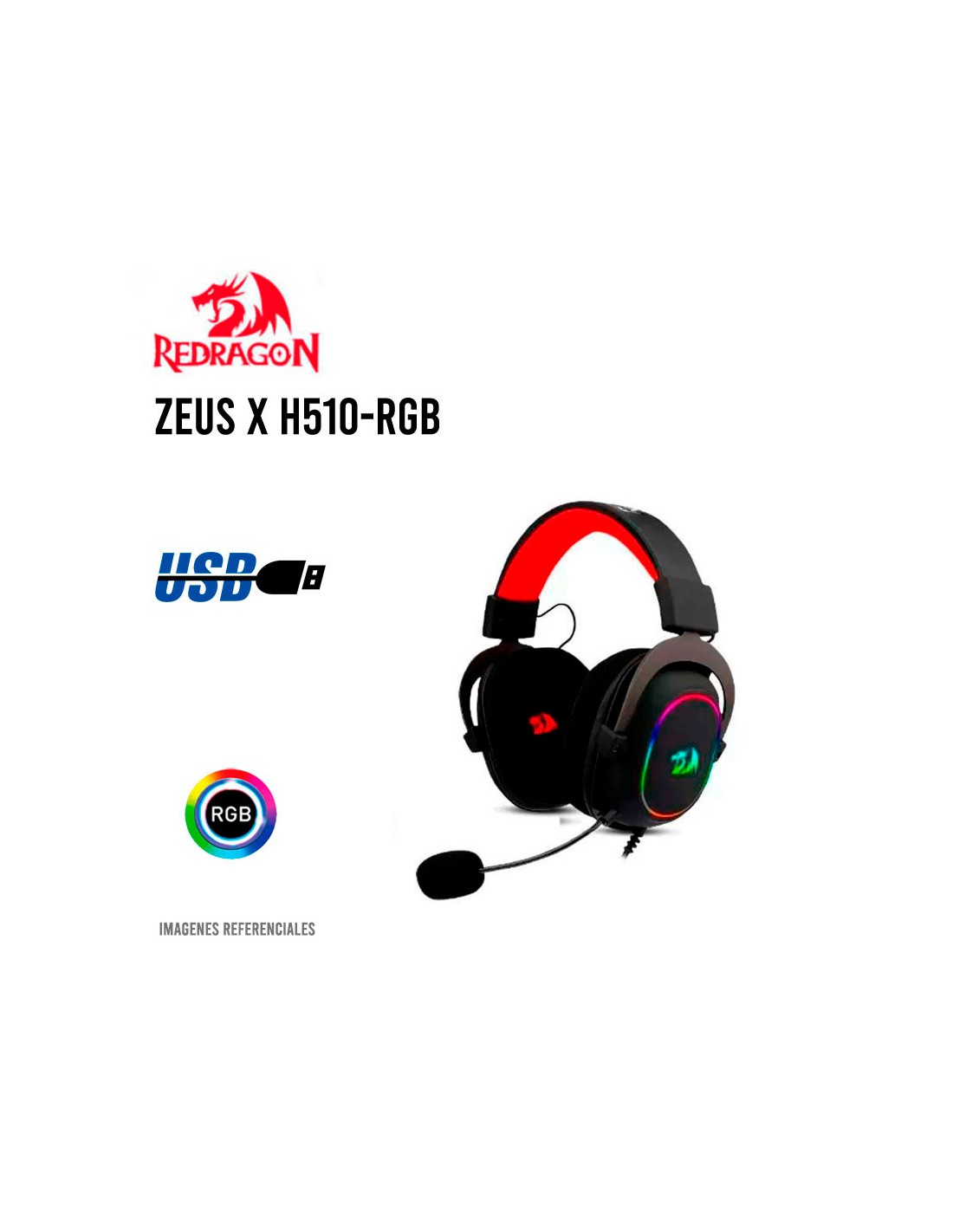 AUDIFONO GAMER REDRAGON ZEUS X ( H510-RGB ) 7.1 VIRTUAL | LED-RGB | USB | BLACK