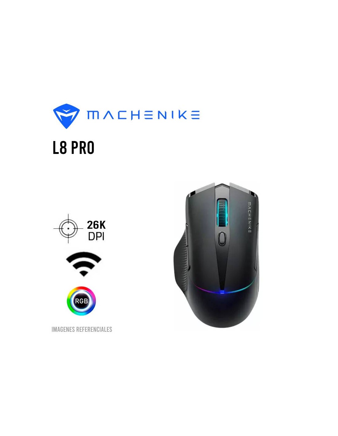 MOUSE GAMER MACHENIKE L8 PRO BLACK ( L8 PRO ) SENSOR PAW3395 | WIRED - WIRELESS 2.4GHZ + BASE DE CARGA | LED-RGB