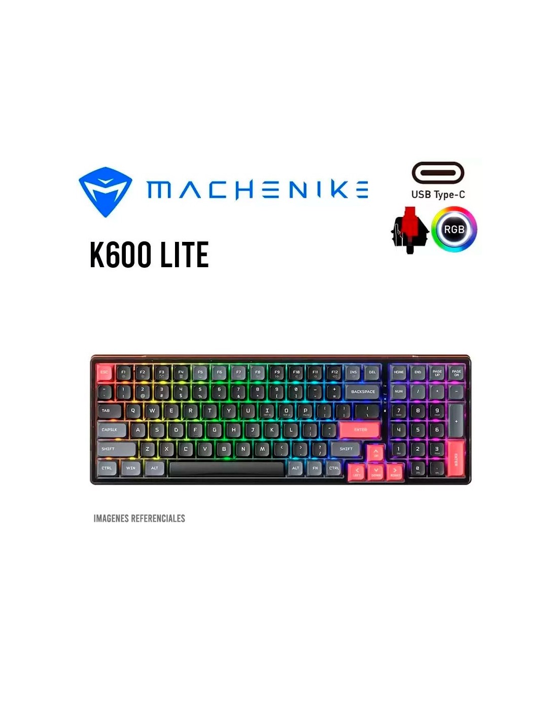 TECLADO GAMER MACHENIKE K600 LITE ( K600-B100 ) SWTICH RED | LED-RGB