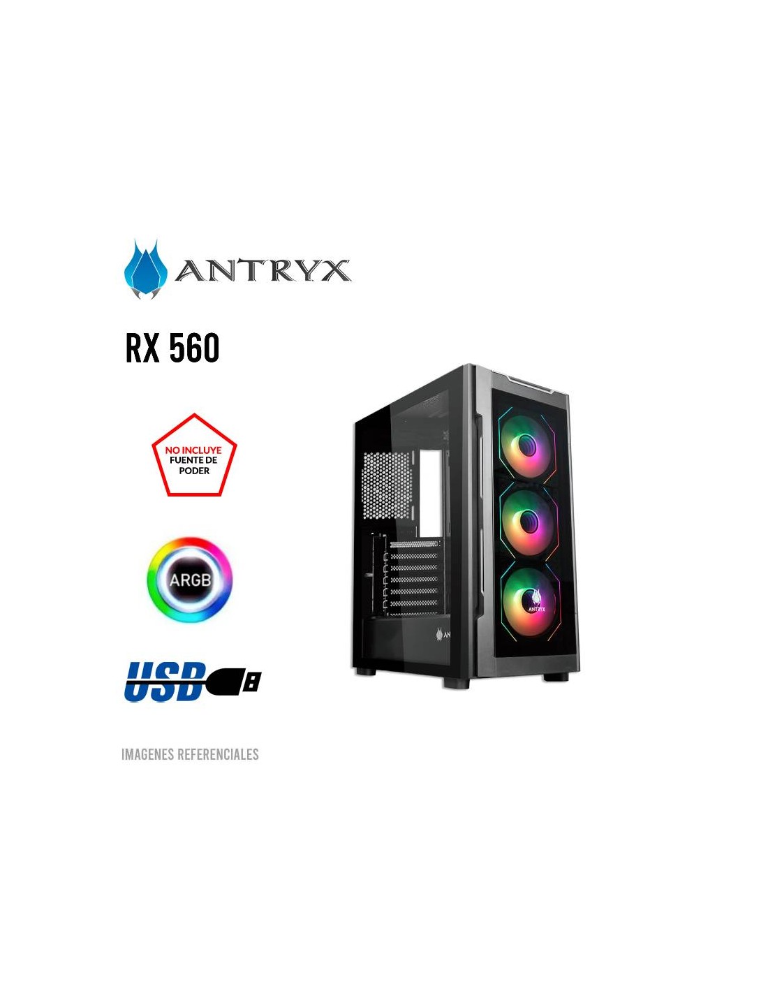 CASE ANTRYX RX 560 BLACK ( AC-RX560K ) S/FUENTE | VIDRIO TEMPLADO | LED-ARGB