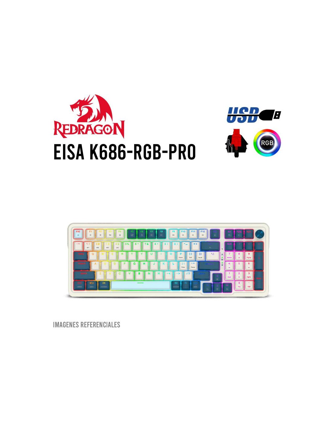 TECLADO GAMER REDRAGON EISA ( K686WB-RGB-PRO ) SWITCH RED | WIRED - WIRELESS - BT | LED-RGB