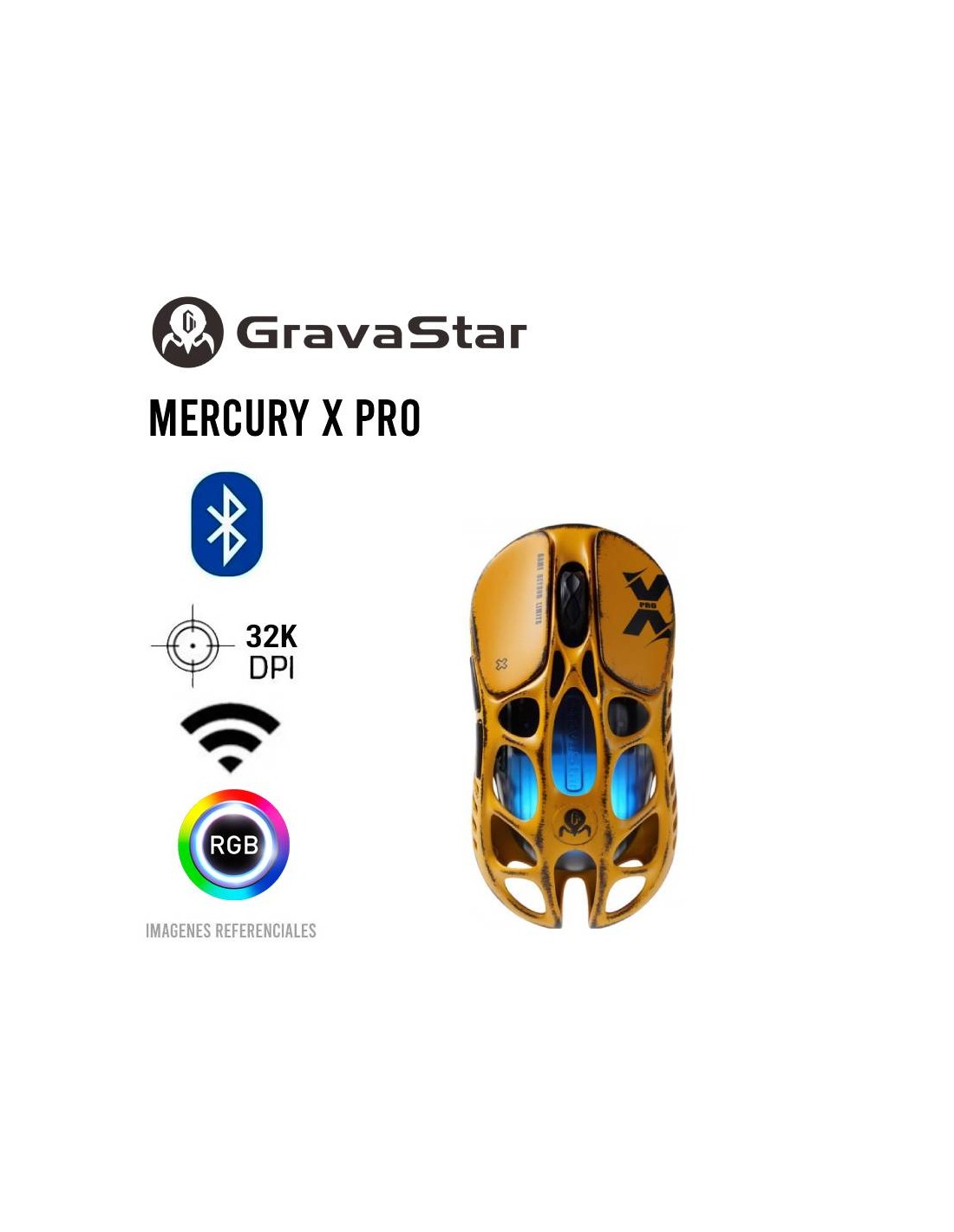 El Gravastar Mercury X Pro Battle-Worn Yellow es un mouse gamer inalámbrico ultraligero de 49 g, diseñado para alto rendimiento. Ofrece hasta 32 000 DPI, tasa de respuesta de 8 000 Hz y conectividad tri-modo (2.4 GHz, Bluetooth y USB-C). Su chasis de aleación de magnesio y su iluminación RGB lo hacen resistente, preciso y visualmente impactante.