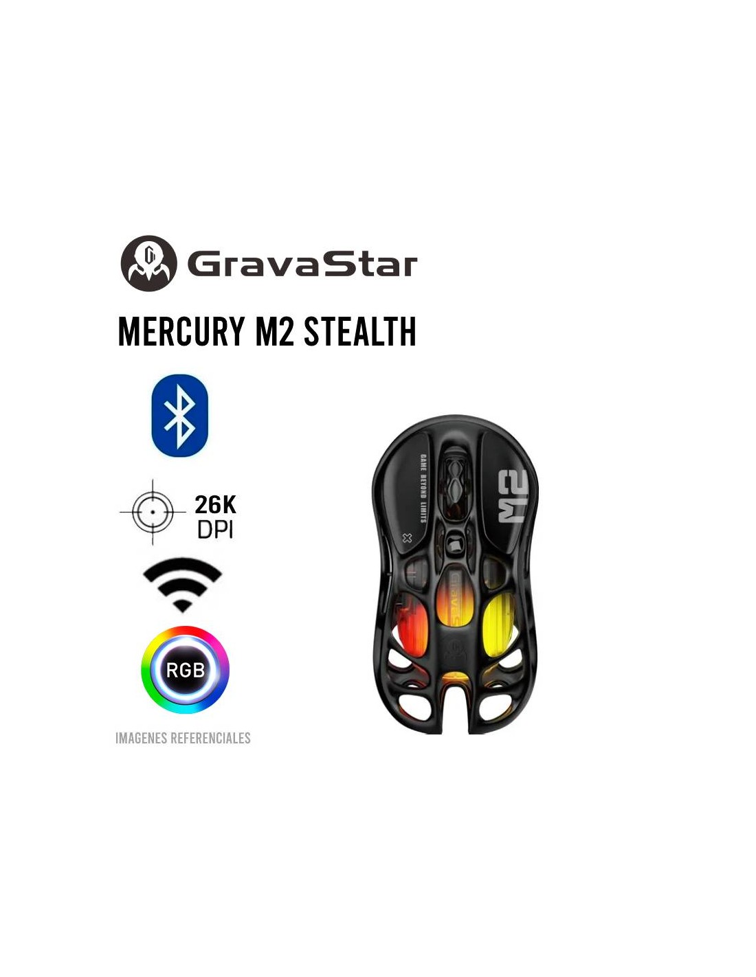 MOUSE GAMER GRAVASTAR MERCURY M2 ( M2-BLK ) WIRELESS | SENSOR PAW3395 - 26K DPI | STEALTH BLACK | LED-RGB