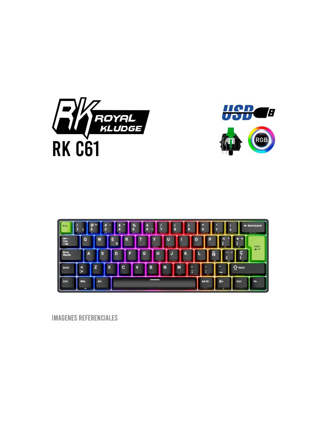 TECLADO GAMER ROYAL KLUDGE RK C61 BLACK GREEN| MINT SWITCH| CABLEADO| LED-RGB