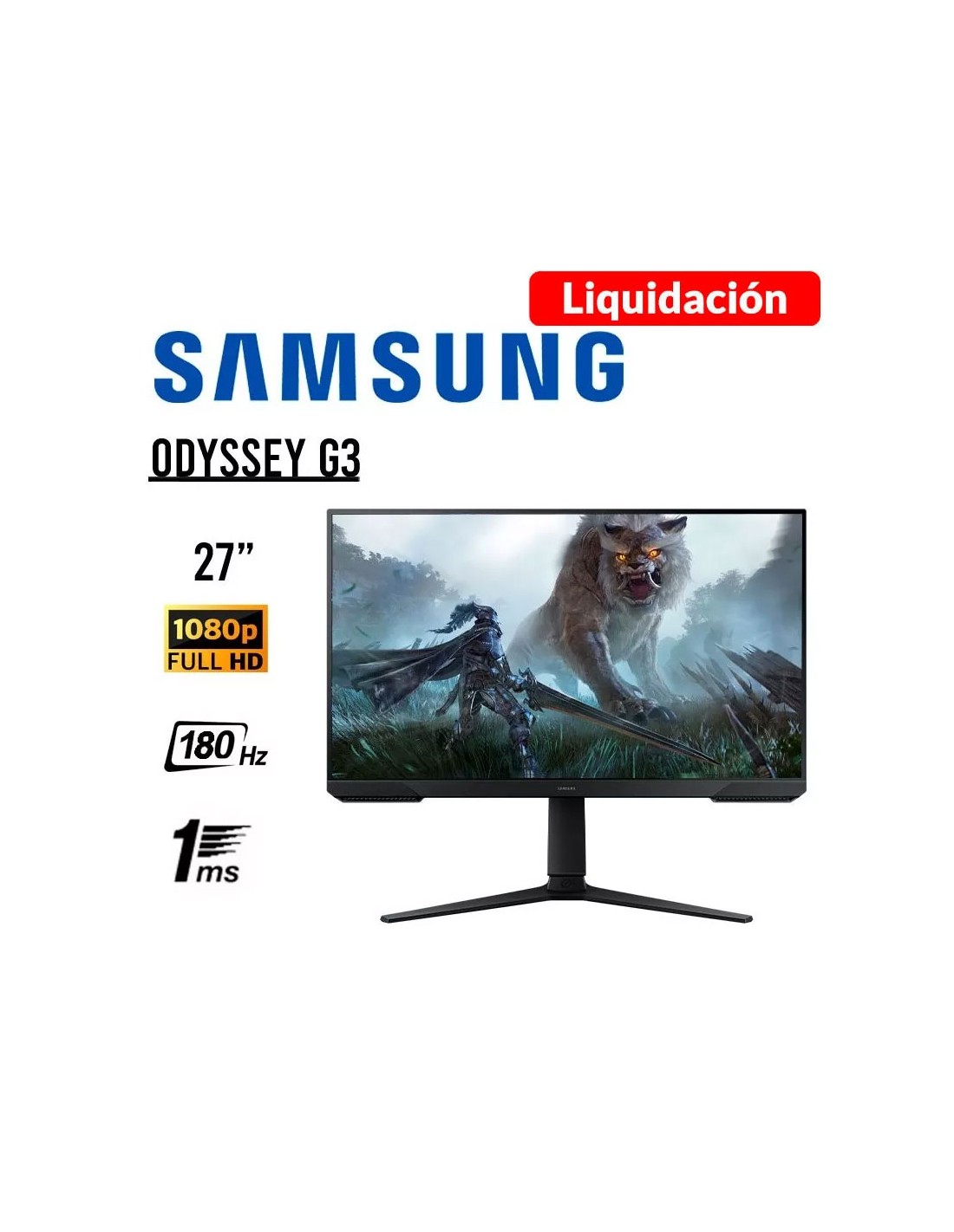 MONITOR GAMER SAMSUNG 27" ODYSSEY G3 ( LS27DG300ELXPE ) PANEL VA | 180HZ - 1MS | HDMI - DP | PIVOT
